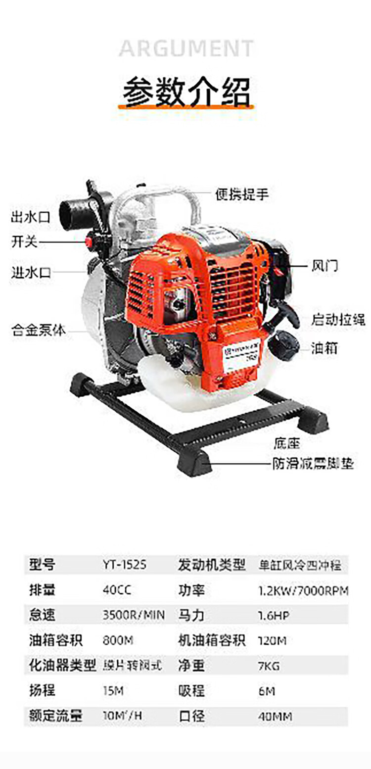 利晨抽水泵汽油机农用灌溉小型家用手提浇地农田抗旱浇菜清水泵自吸泵 自营