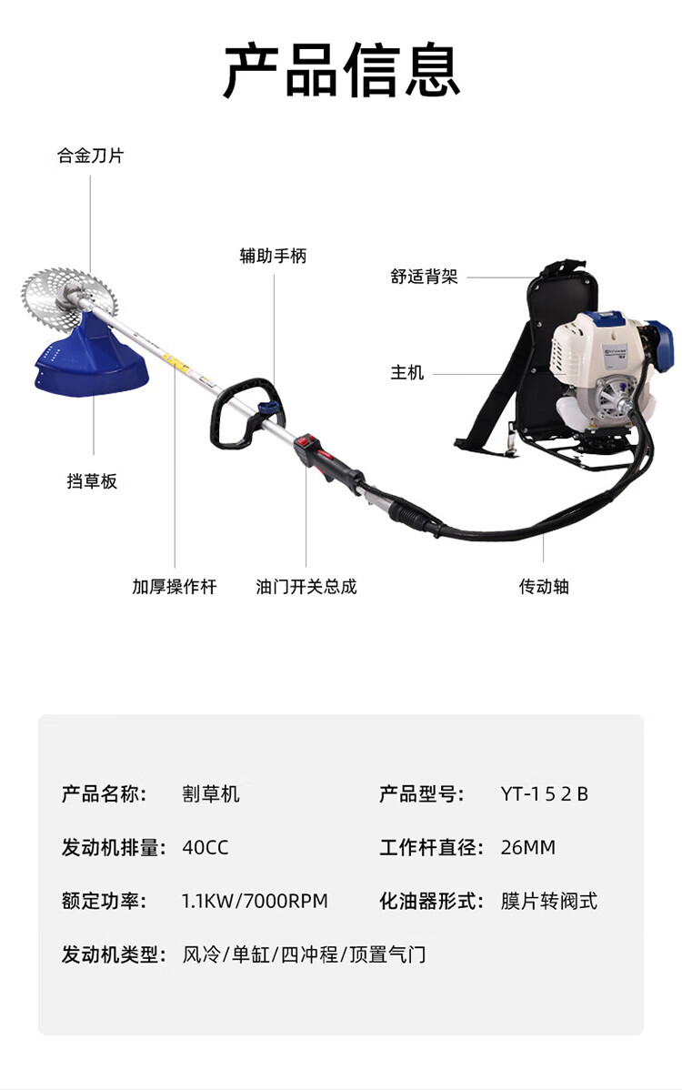 利晨四冲程152背负式汽油割草机打草机大功率汽油农用开荒除草收割机(152-B背负式割草机) 自营