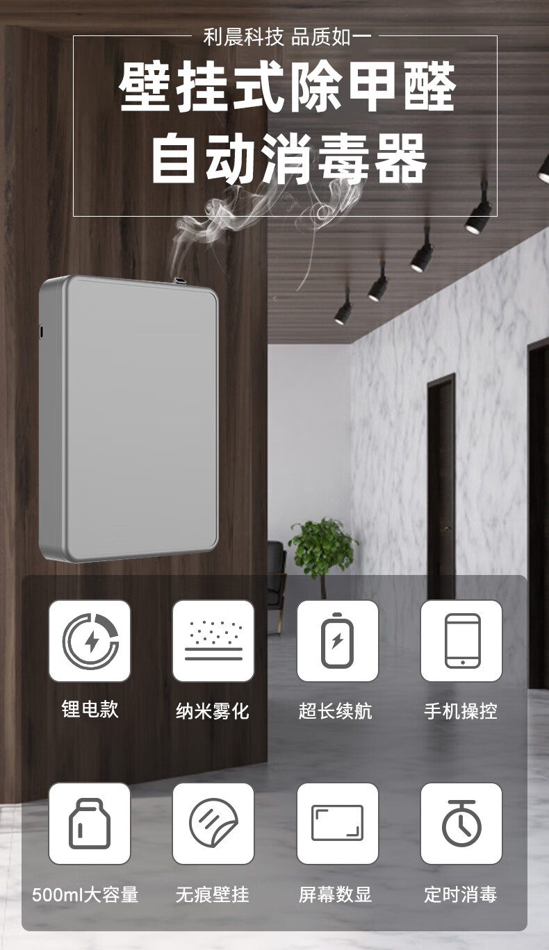 利晨壁挂式喷雾器 除甲醛智能自动消毒机香氛机售楼部净化商用插电款 自营