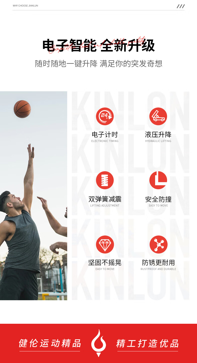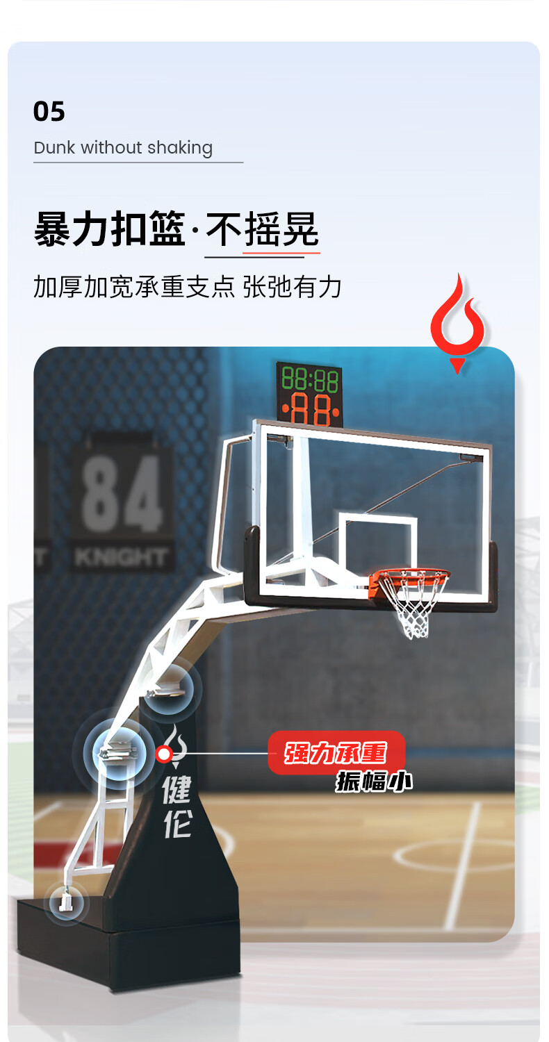 健伦(JEEANLEAN)JLAA169篮球架标准成人室内外移动豪华比赛版电动液压篮球架 自营