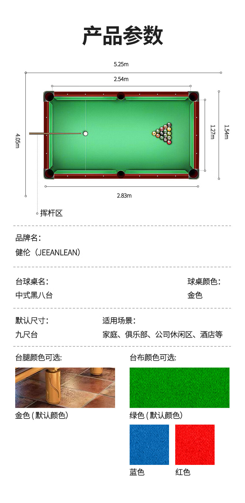 健伦台球桌标准成人8球家用桌球桌黑八九尺台球桌 顶配版JLAB159 自营