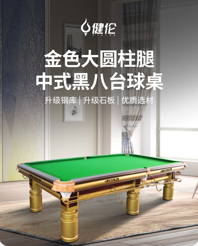 健伦(JEEANLEAN)JLAB160台球桌标准成人8球家用桌球桌黑八九尺台球桌 顶配版 自营