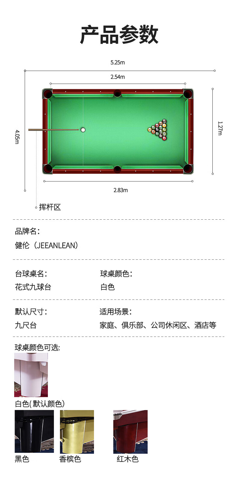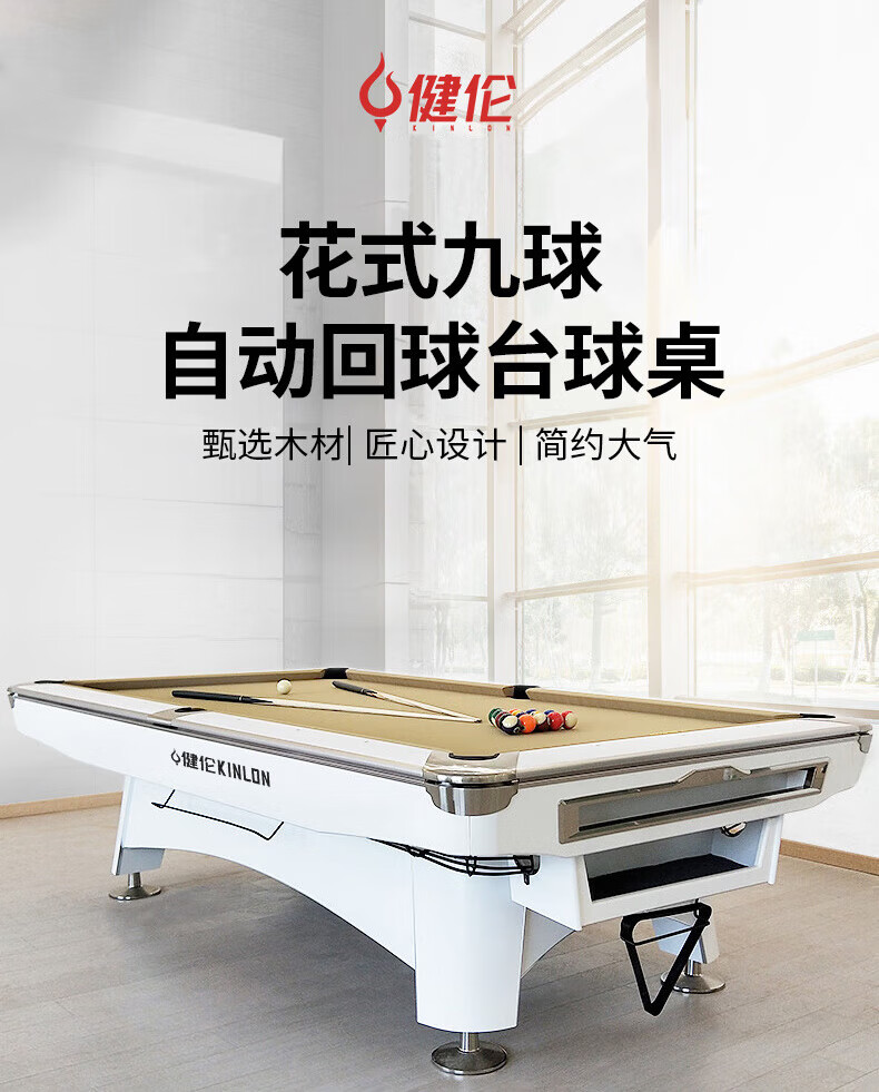 健伦(JEEANLEAN)美式台球桌九球桌球台家用台球桌桌球案子球厅球房俱乐部 JL-S15 自营