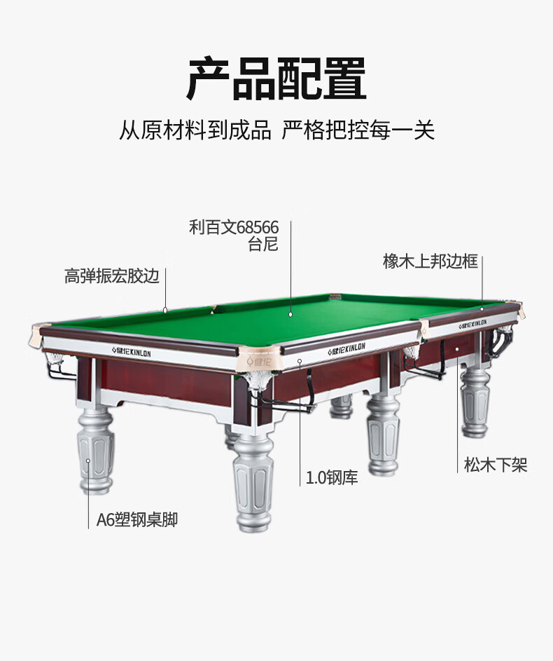 健伦(JEEANLEAN)台球桌钢库银腿标准九尺美式黑八JL-ZQT-A5S 自营
