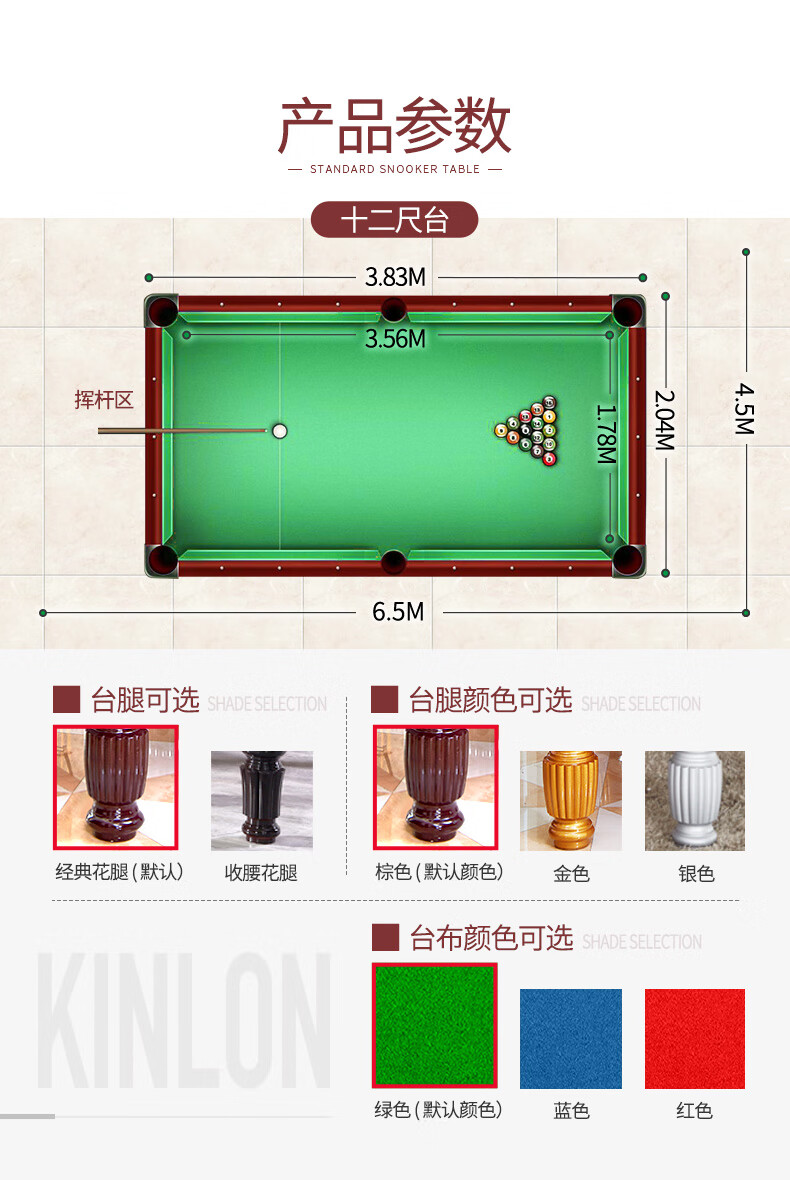 健伦(JEEANLEAN)JLAB124台球桌标准英式斯诺克室内球房家用英式标准桌球 顶配款 自营