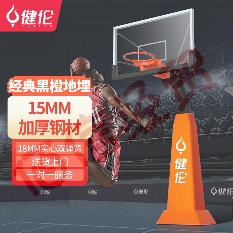 健伦(JEEANLEAN)JL-2704篮球架 标准成人户外移动地埋式篮球架 黑橙款 自营