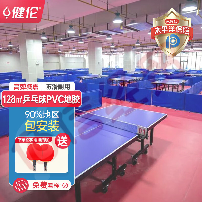 健伦室内乒乓球场地胶训练比赛高端场馆防滑塑胶地垫PVC布纹5mm 自营