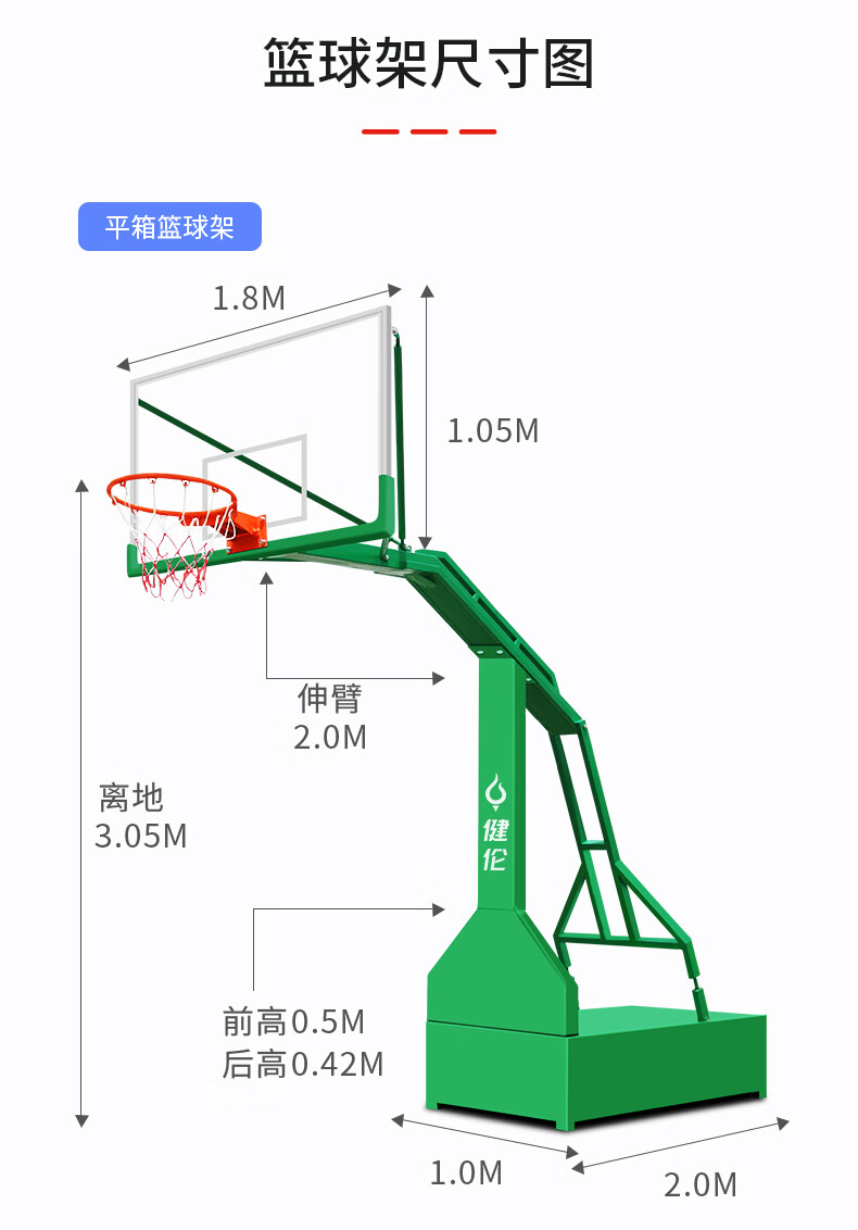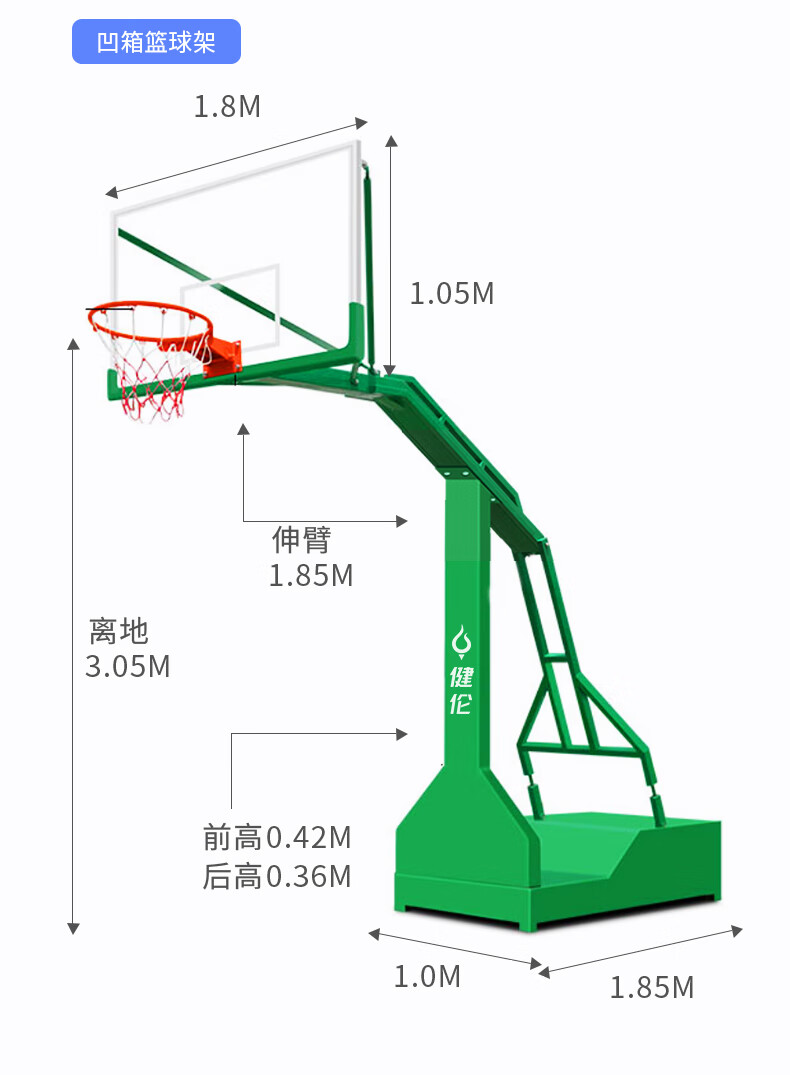 健伦篮球架成人户外标准篮球框室外移动凹箱球架2支(免费安装) 自营