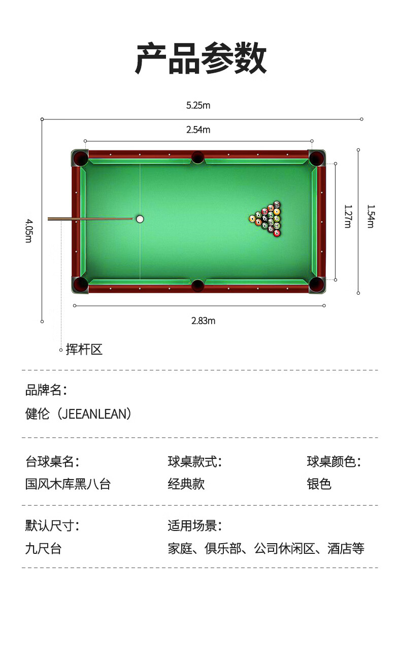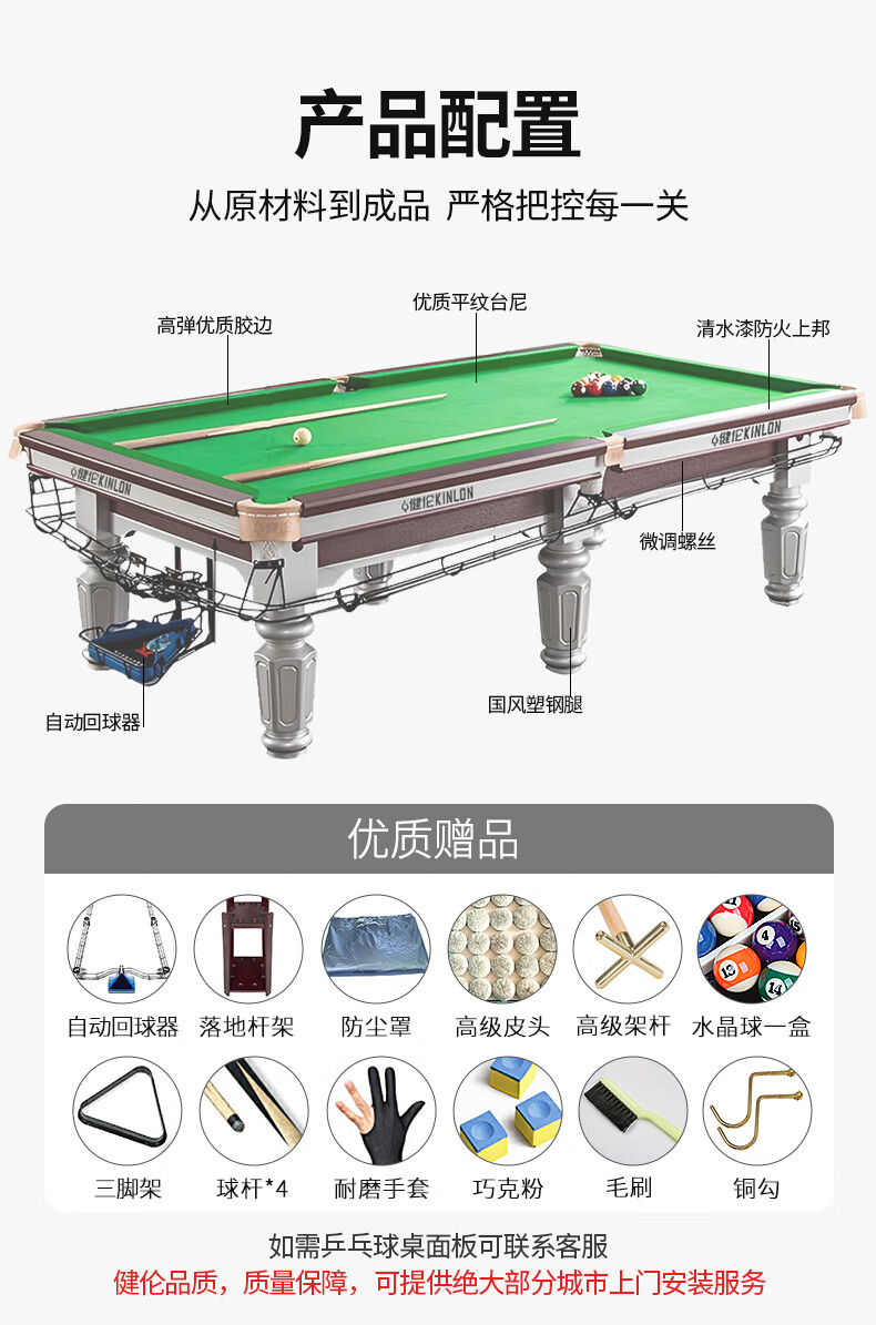 健伦台球桌木库成人家用美式黑8台球桌商用单位球房 尊享版JLAB107 自营