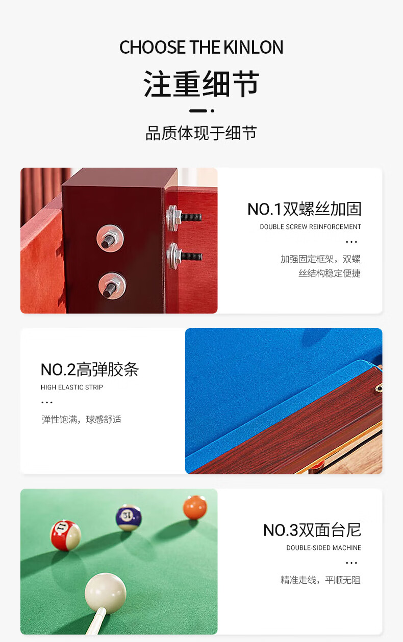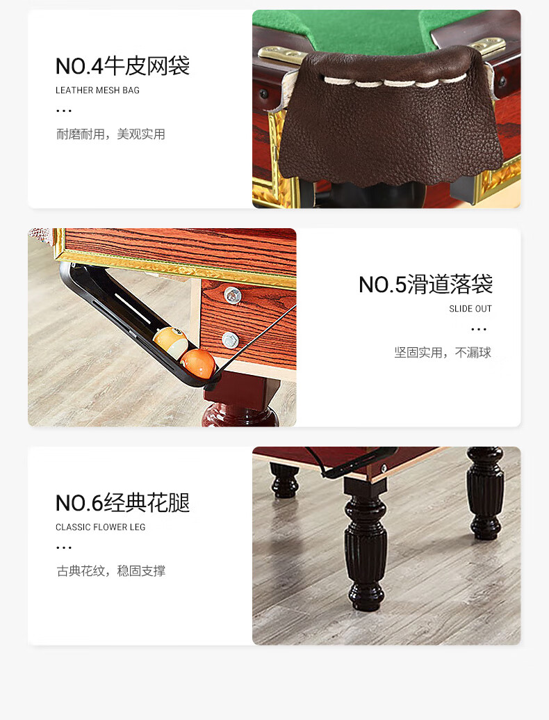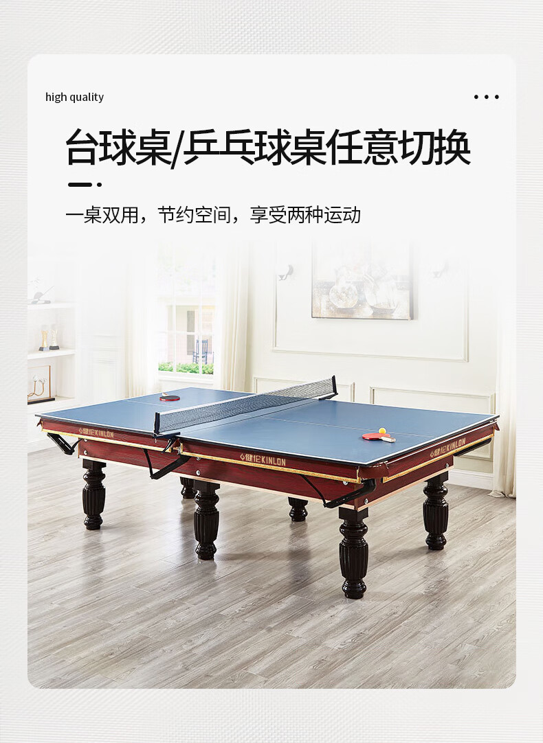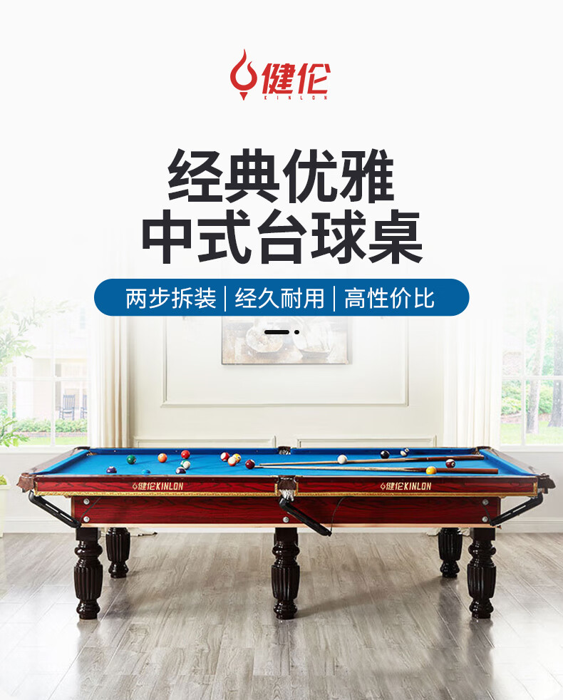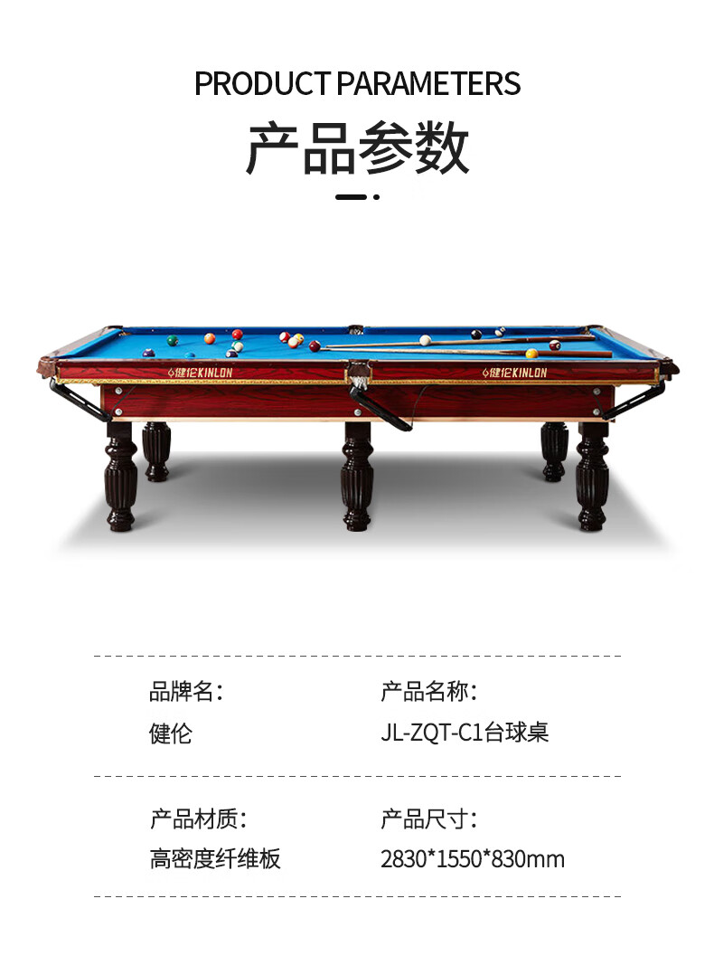 健伦(JEEANLEAN)JLAB134台球桌高密度板 九尺家用高端美式黑八 高质量采购款 自营