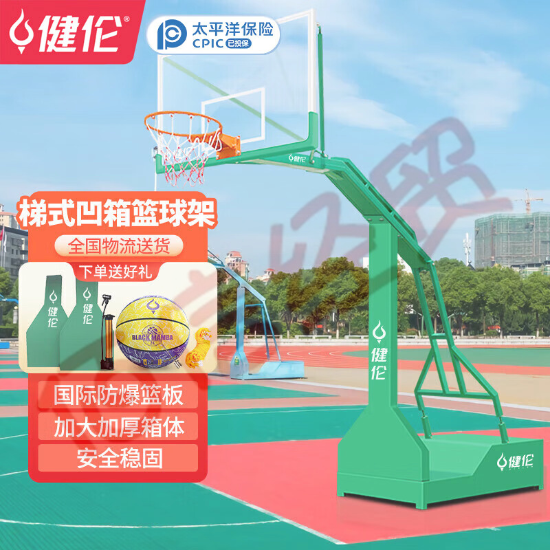 健伦(JEEANLEAN)JLAA136篮球架小学生校用凹箱体篮球架2.75米高一支 自营