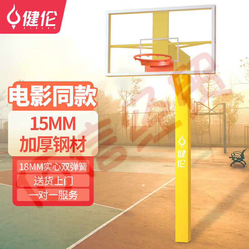 健伦(JEEANLEAN)JLAA179篮球架 标准成人户外地埋篮球架黄色 自营