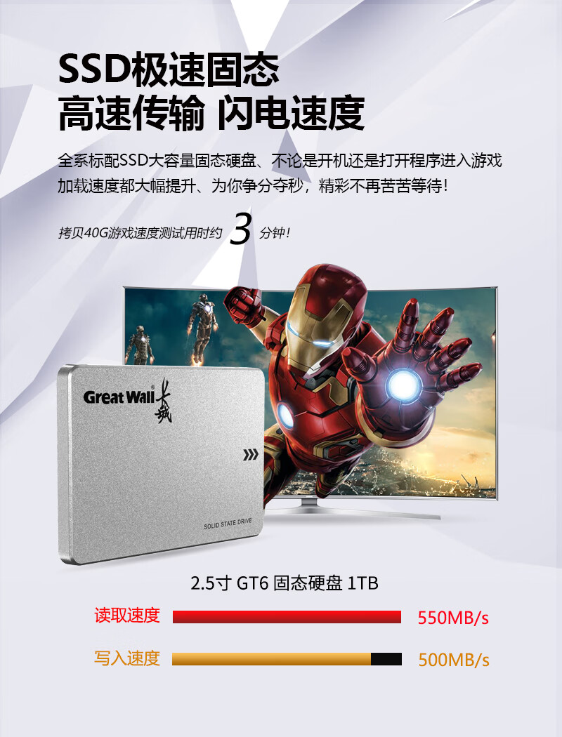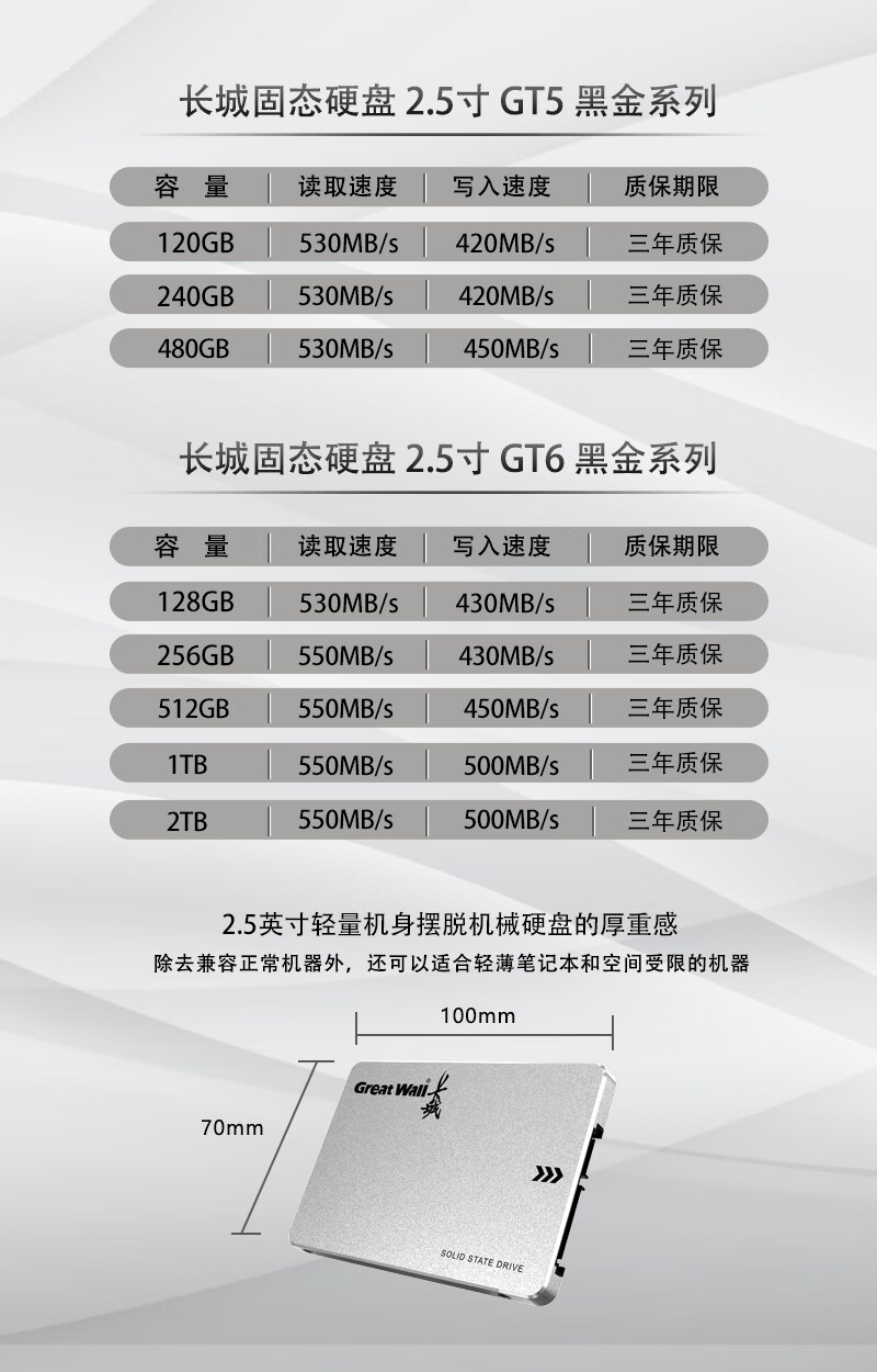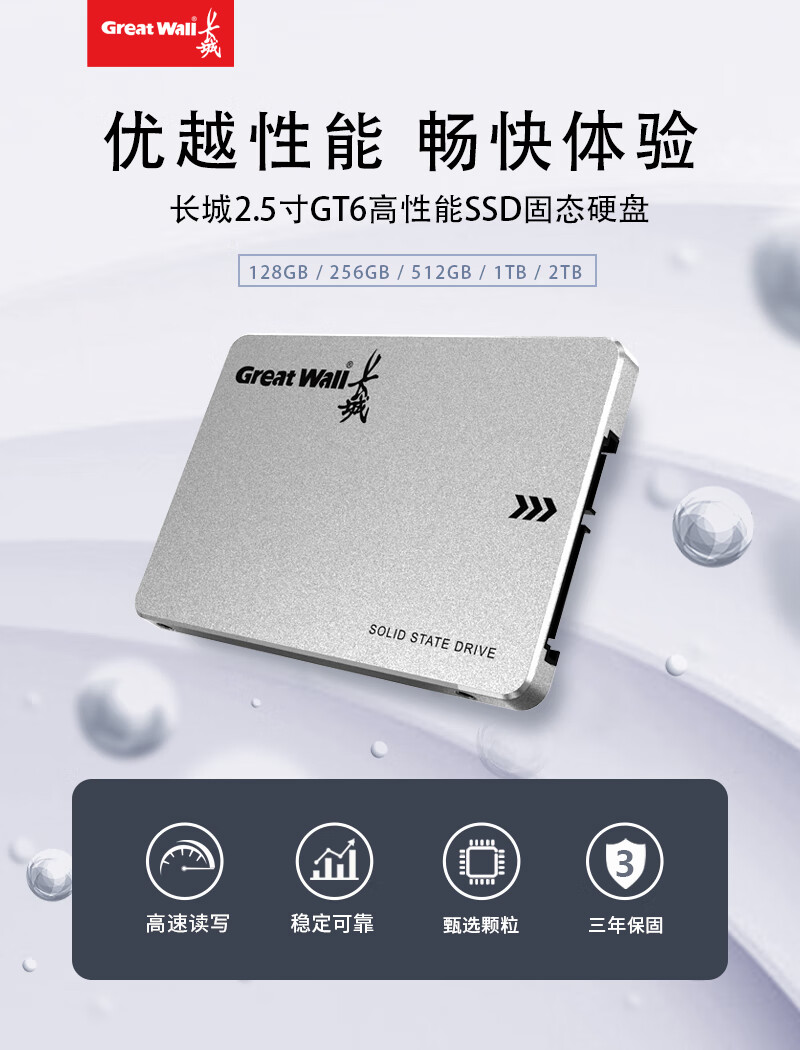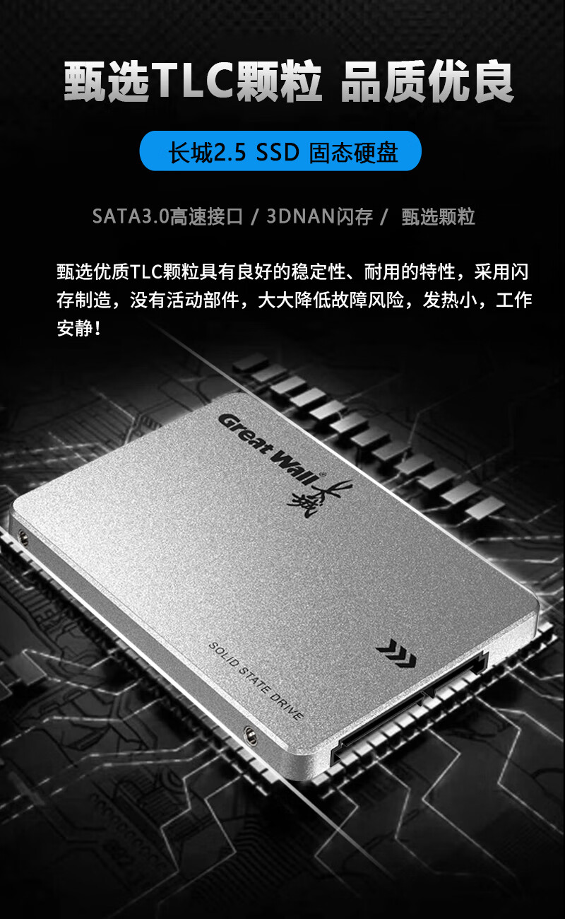长城(Great Wall)GT黑金系列 SSD固态硬盘 SATA3.0接口台式机笔记本固态硬盘 GT6 旗舰版 1TB 黑金SATA3.0 自营