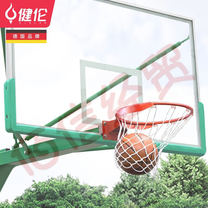 健伦(JEEANLEAN)JL-B121篮球板室内外标准钢化玻璃篮板 铝包边1.2厚 含双弹簧篮筐 自营