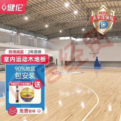 健伦篮球场实木运动地板室内体育馆羽毛球场舞蹈室枫桦木双龙骨C级 自营