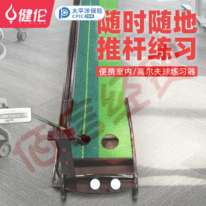 健伦(JEEANLEAN)高尔夫推杆练习器办公室红木推杆练习毯球杆套装 3米训练器带轨道 自营