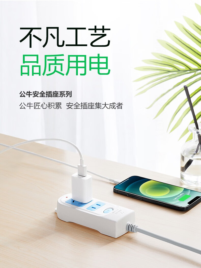 公牛插座多功能插排多用插板带线家用桌面排插多孔插线板/拖线板/接线板/电插板/插座板 2插位总控开关 5米612 自营