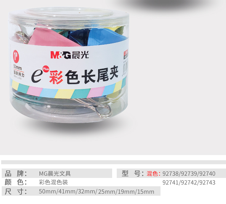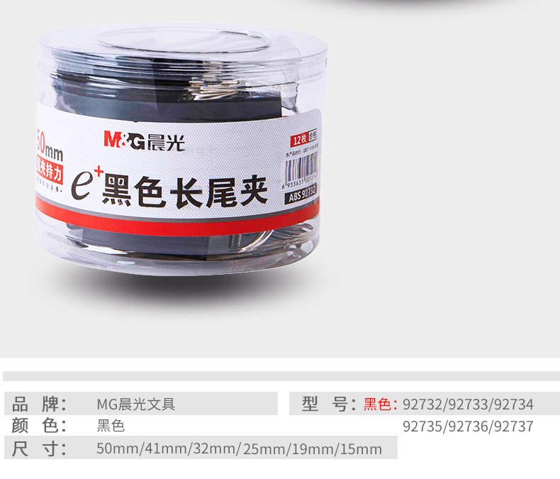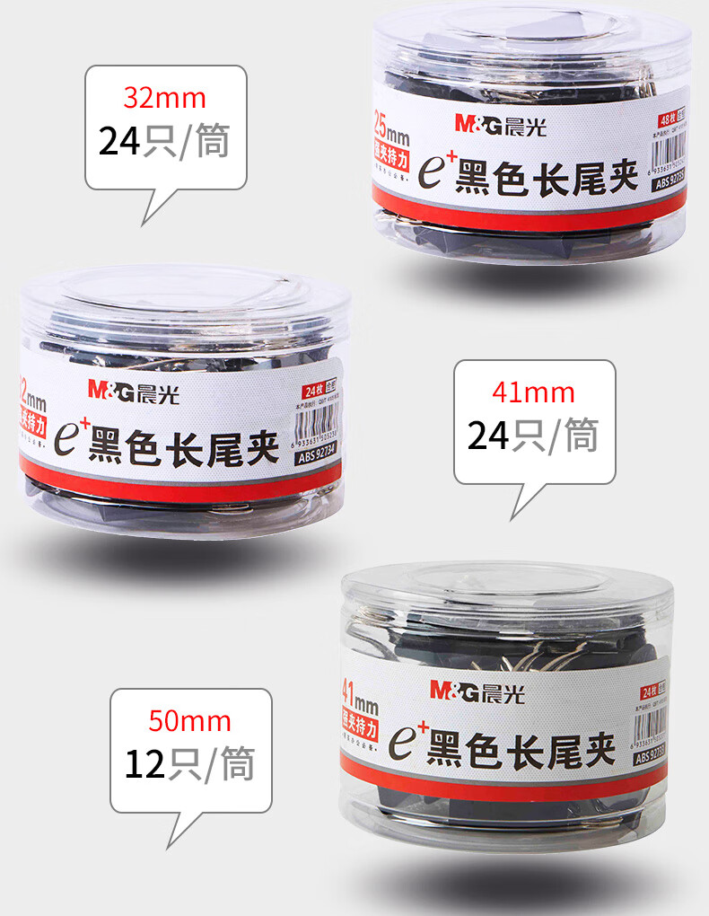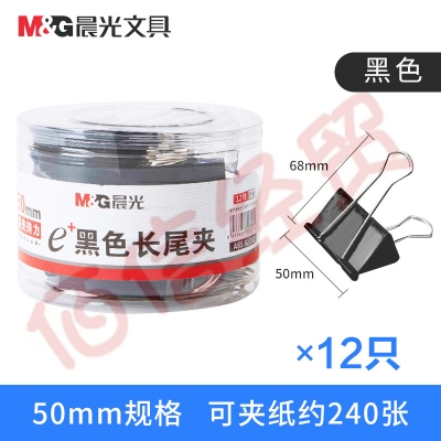 晨光(M&G)晨光 长尾夹燕尾夹学生办公夹子凤尾夹彩色大中小号蝴蝶夹凤尾夹票据夹 1筒装黑色50mm(12枚/筒) 自营