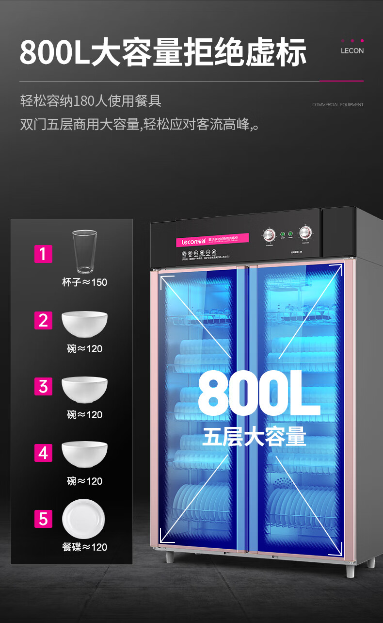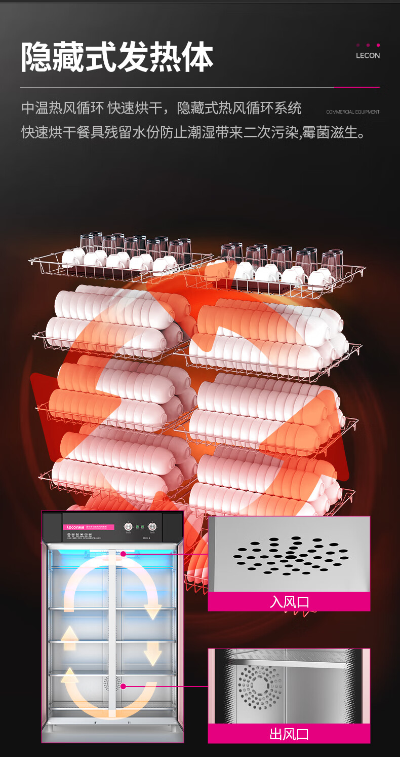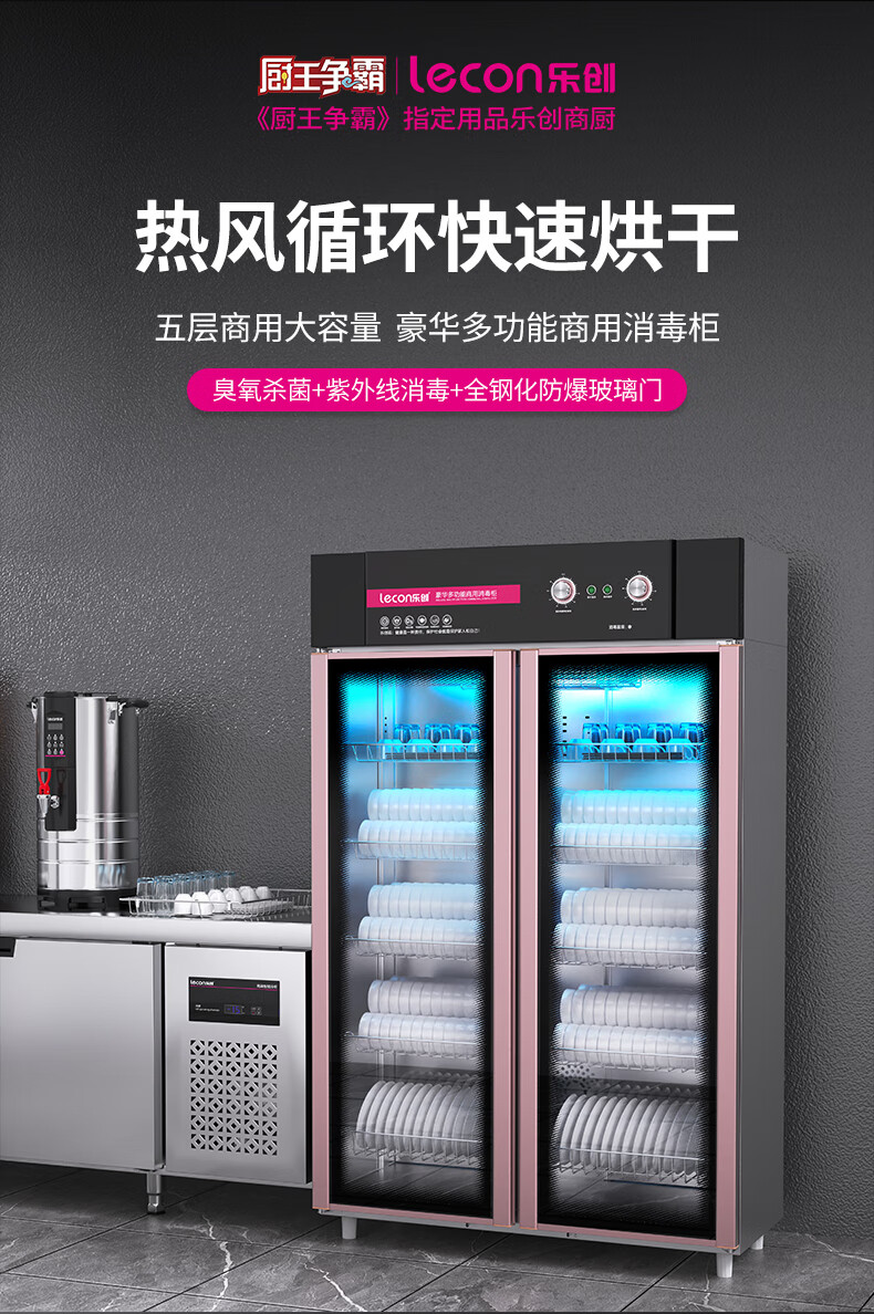 乐创(lecon)商用消毒柜 密胺800L不锈钢大型学校餐厅饭堂多功能中温餐具柜 LC-J-XD1000A