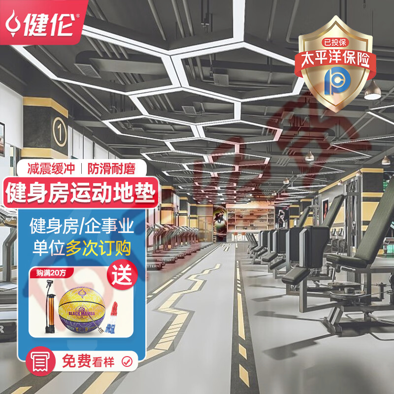 健伦 健身房橡胶地垫运动地胶哑铃杠铃防滑减震防砸缓冲隔音健身地板 自营