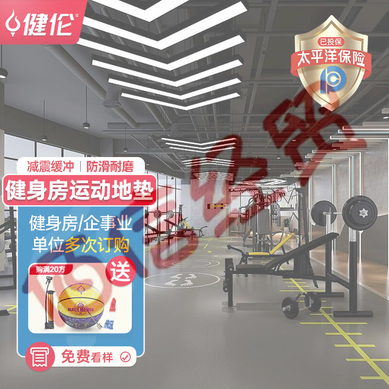 健伦健身房橡胶地垫运动地胶哑铃杠铃防滑减震隔音防砸缓冲地板 自营