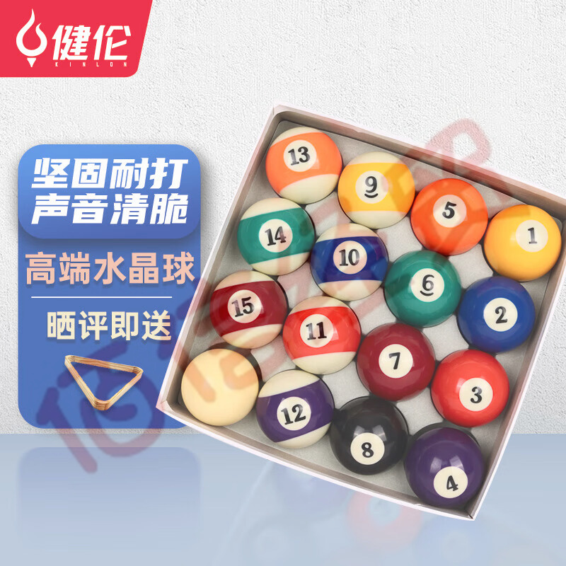 健伦台球桌球黑8台球子水晶球美式十六彩大号桌球树脂球57.2mmJL-TQ01 自营