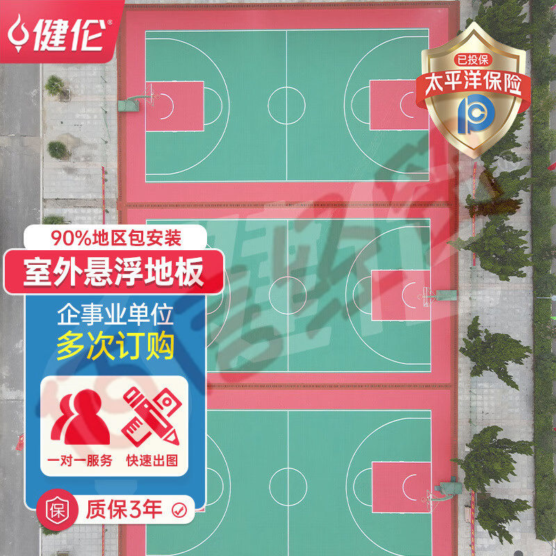 健伦篮球场悬浮地板户外轮滑悬浮式拼装地板室外悬浮地垫16宫格软连接 自营