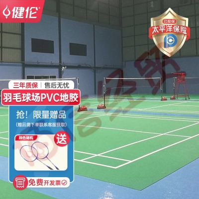 健伦羽毛球场地胶 专业室内场馆防滑塑胶地垫PVC水晶砂6.0mm 自营