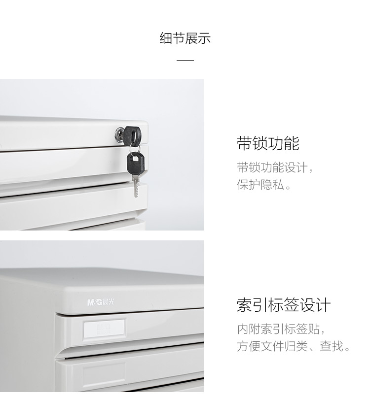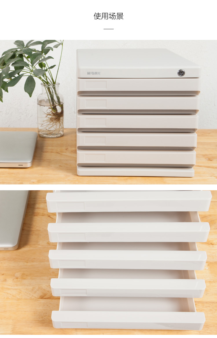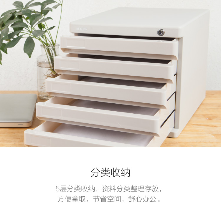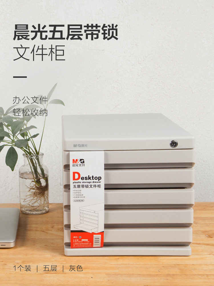 晨光(M&G)文具5层带锁桌面文件柜 抽屉式拉手A4资料收纳柜 带索引标签 办公用品 灰色、黑色单个装ADM95298 自营
