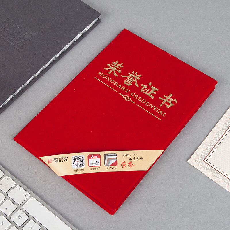 晨光(M&G)文具12K红色绒面荣誉证书230*157mm烫金竖式证书学校/企业褒奖证书附赠内芯  10本装ASCN9514 自营