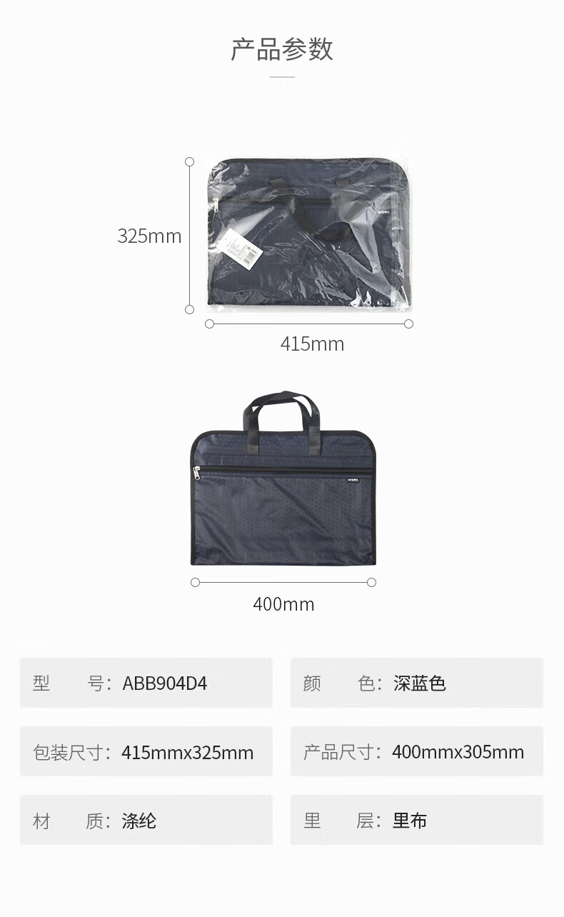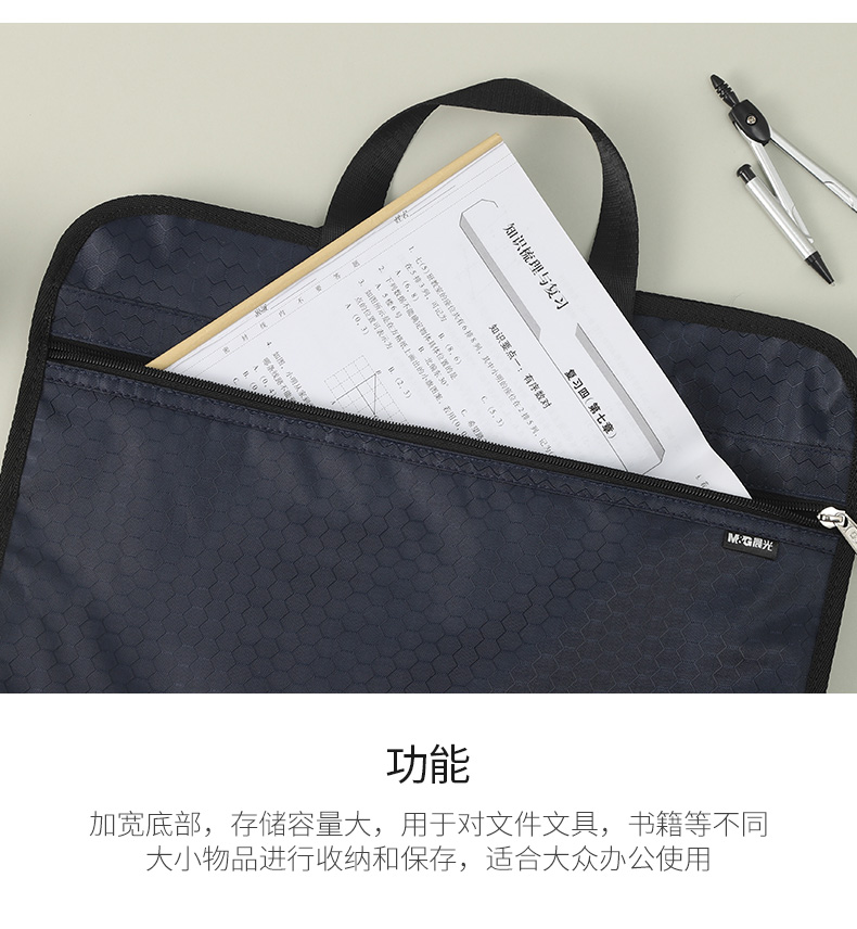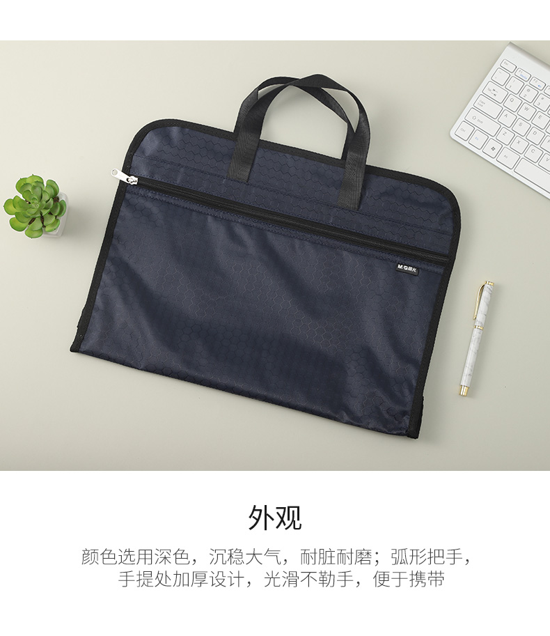 晨光(M&G)文具深蓝色双层加宽拉链手提包 文件收纳事务包 商务公文拉链袋 单个装ABB904D4B19 自营