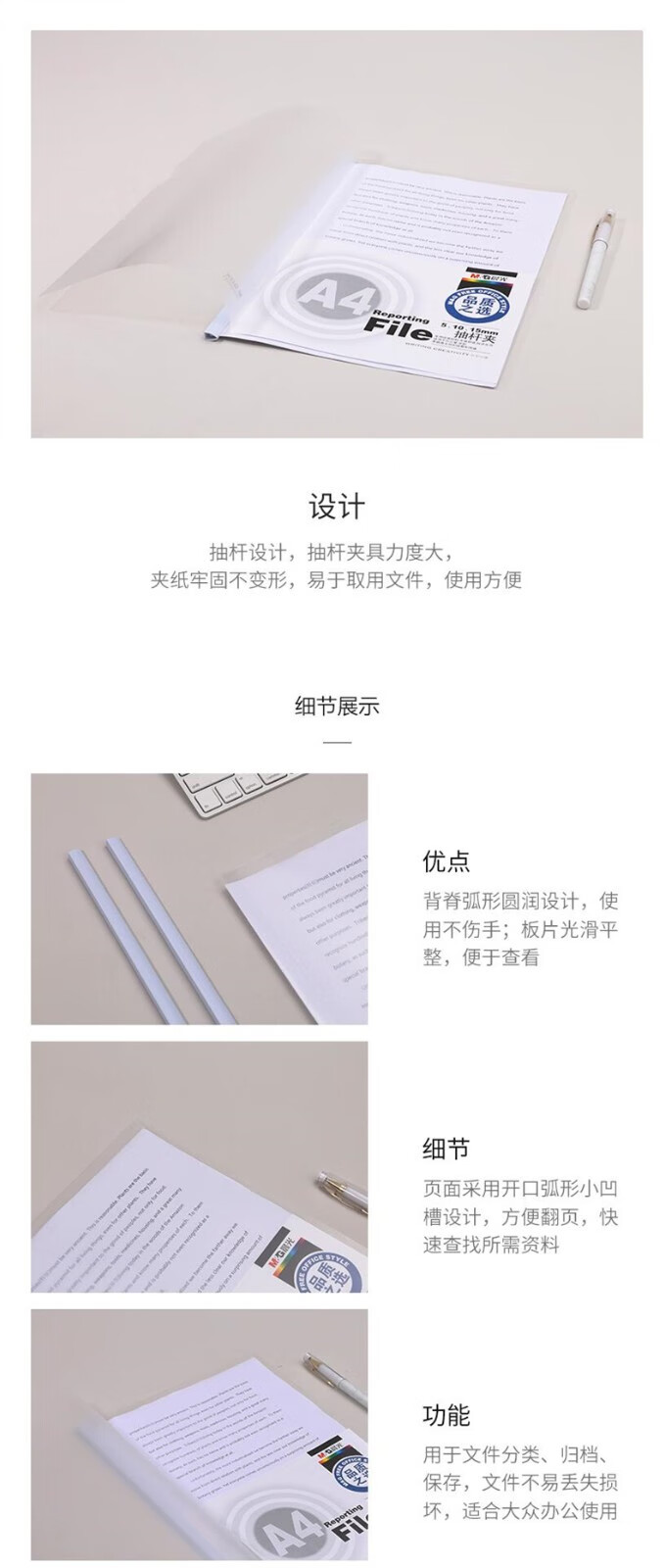 晨光(M&G) 抽杆夹办公报告夹 资料整理收纳文件夹拉杆夹学生考试收纳 ADMN4279抽杆夹25mm白色5个/包 自营
