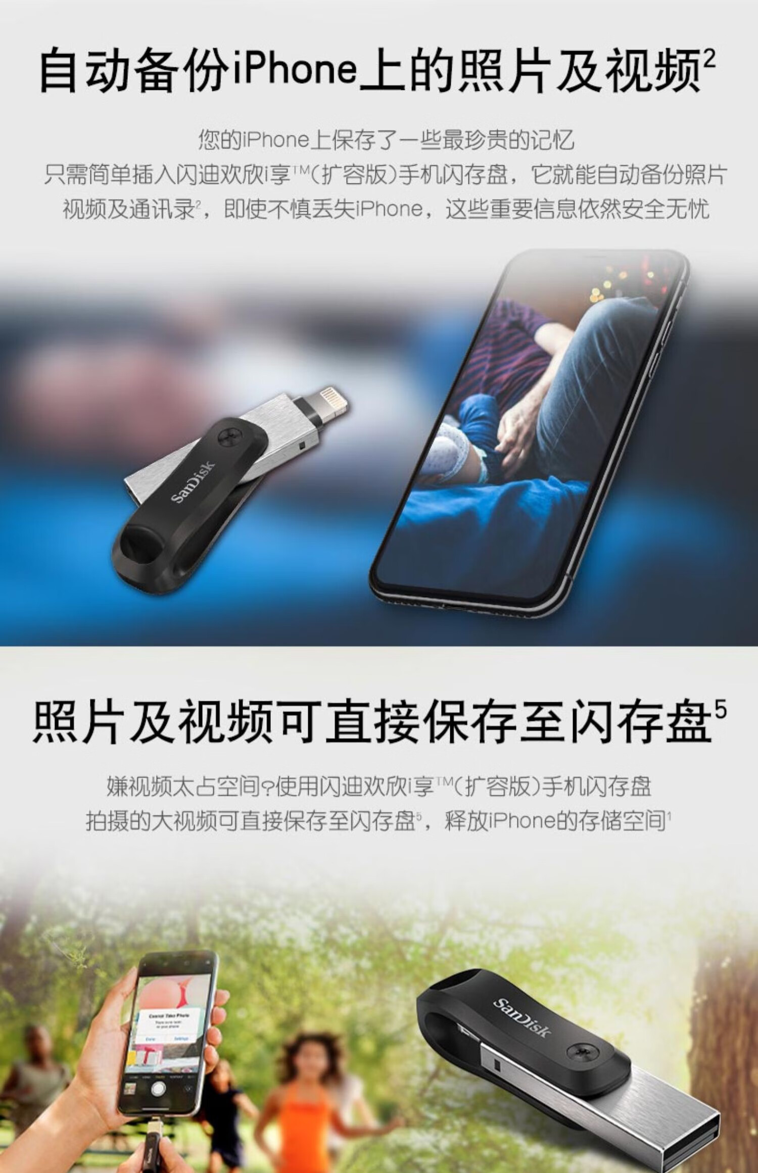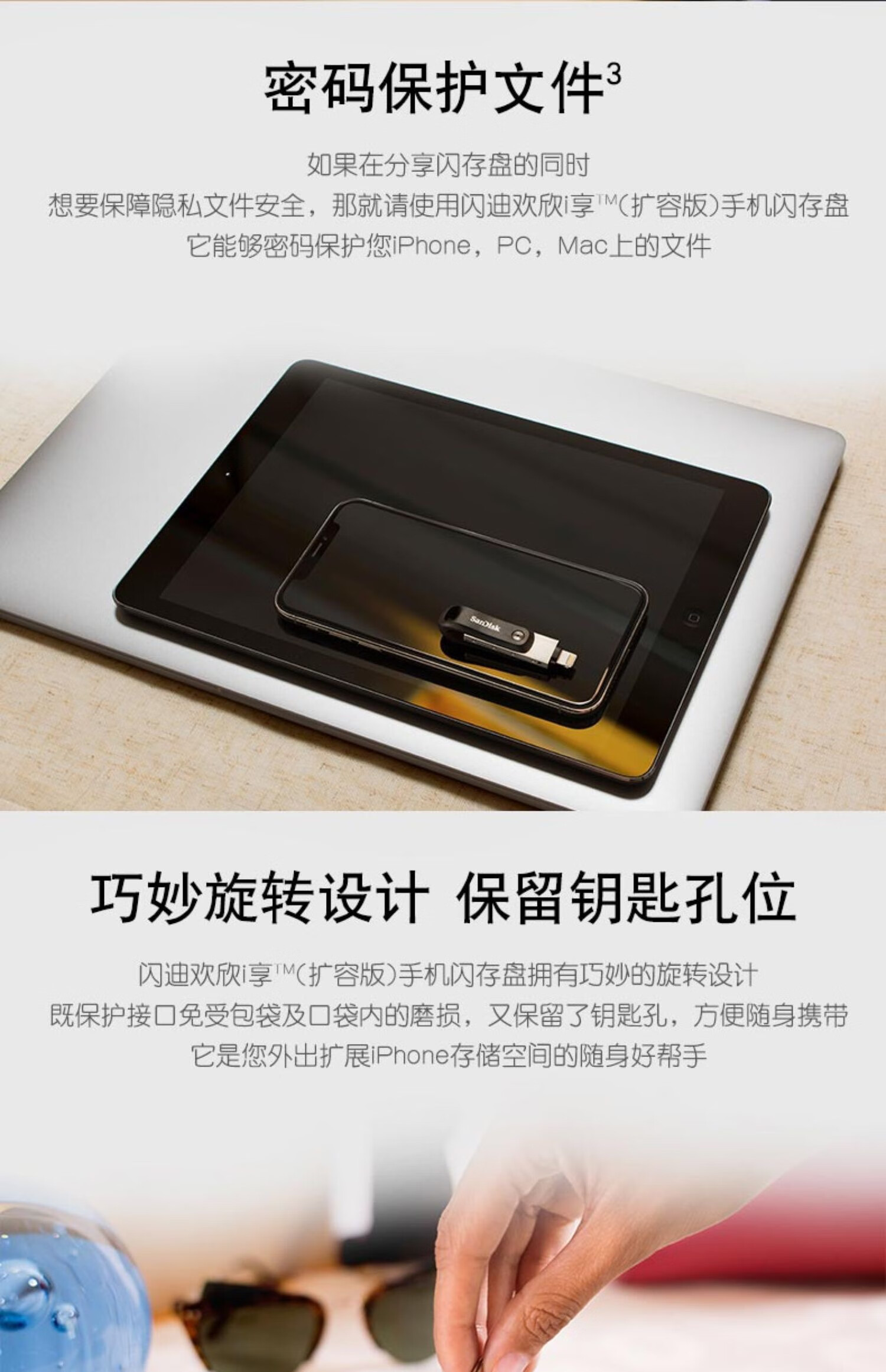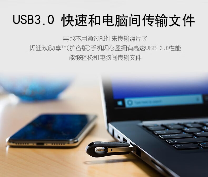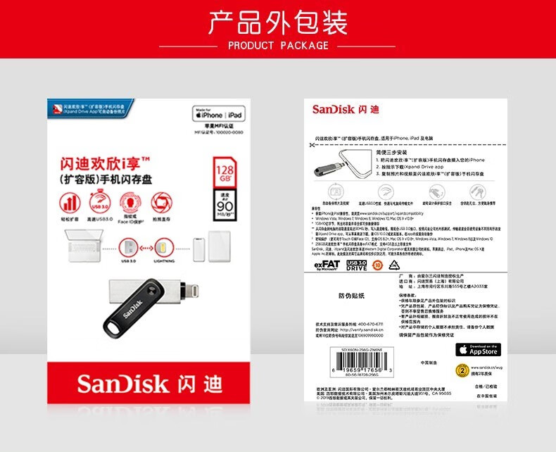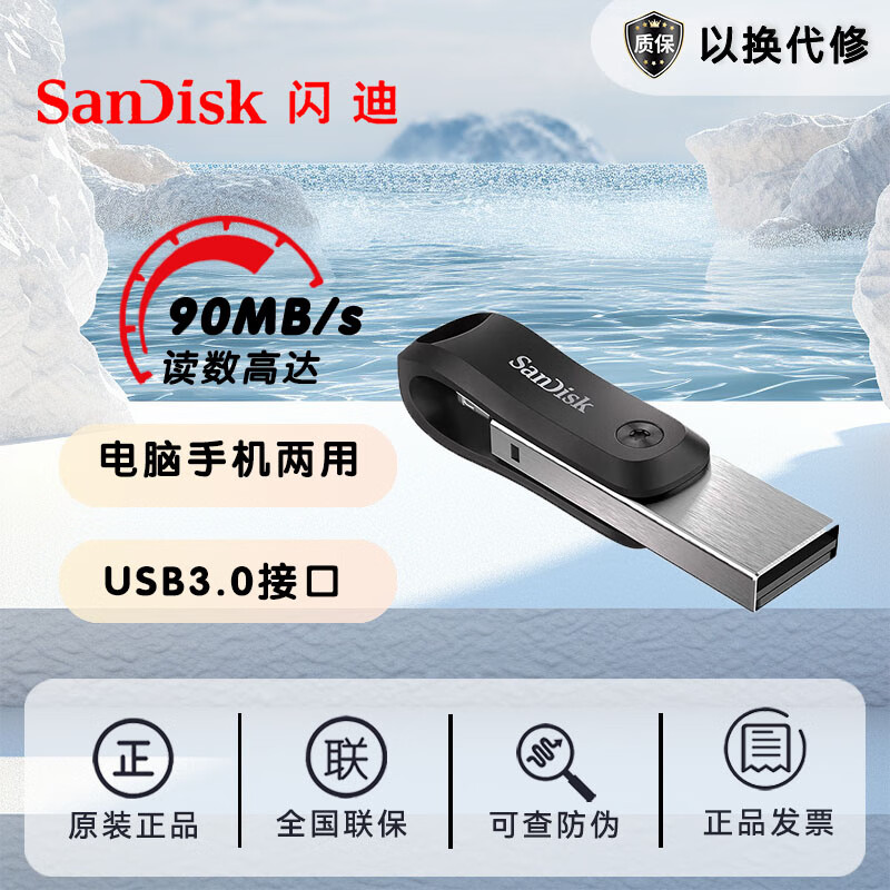 闪迪(SanDisk) 256GB Lightning USB3.1 苹果手机U盘 iXpand欣享 iX60欢欣i享 128GB 自营