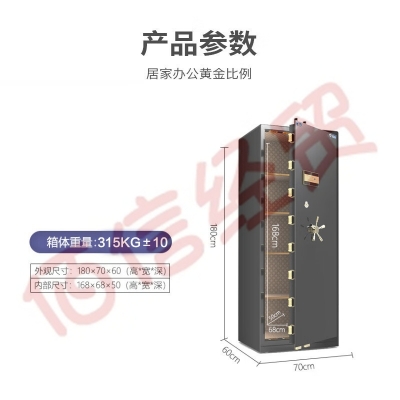 虎牌保险柜家用办公小型国标认证保险箱180cm指纹密码全钢防盗可入墙保密柜夹万 尊虎系列 商务黑 自营