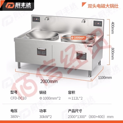 厨丰达 商用电磁炉 电磁灶商用炒灶食堂大功率电磁炉30kw厨房猛火电炒锅饭店凹面电磁炉-100锅*2 380v(其它型号咨询客服) 自营