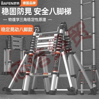 巴芬 德国品牌伸缩梯子家用人字梯加厚铝合金便携工程折叠多功能楼梯 【稳固防晃旗舰款】多功能4.1米 自营