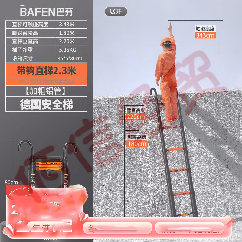 巴芬伸缩梯多功能梯子家用梯人字梯加厚铝合金工程梯升降直梯折叠楼梯 单面直梯2.3米【靠墙使用】 自营