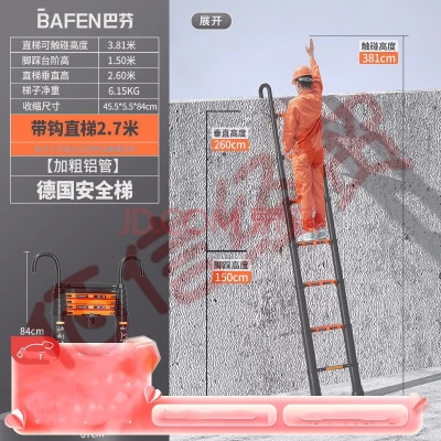 巴芬伸缩梯多功能梯子家用梯人字梯加厚铝合金工程梯升降直梯折叠楼梯 单面直梯2.7米【靠墙使用+挂钩】 自营