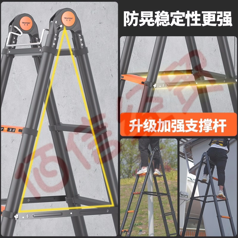 巴芬伸缩梯多功能梯子家用梯人字梯加厚铝合金工程梯升降直梯折叠楼梯 单面直梯5.9米【靠墙使用+挂钩】 自营