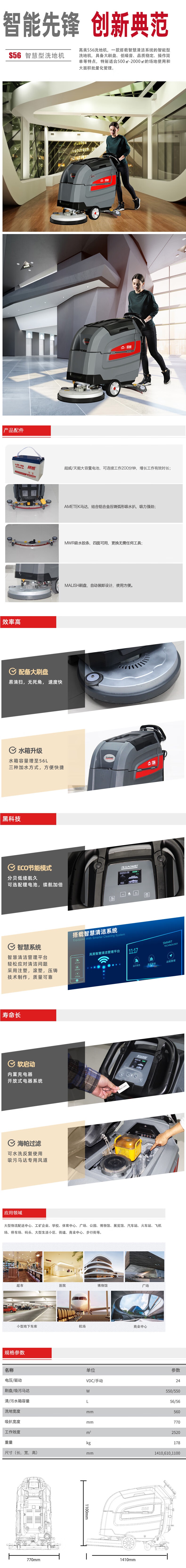 GAOMEI高美S56手推式洗地机拖地机车间多功能商用擦地机车间超市商场工业全自动洗地机低噪音续航久 自营