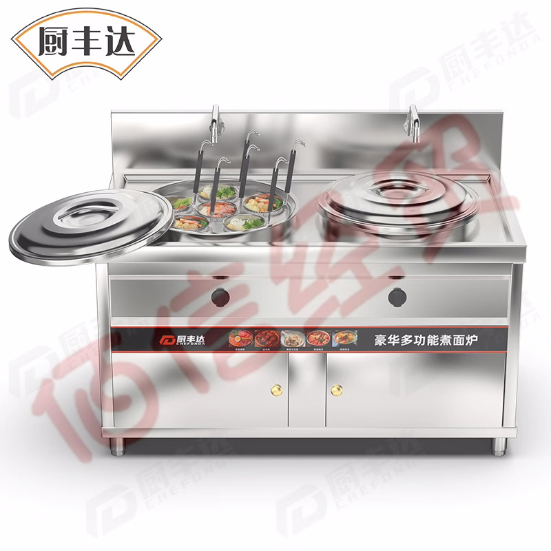 厨丰达 方形双头立式煮面炉燃气大容量煮面桶不锈钢开水桶熬汤麻辣烫汤桶加热保温桶【燃气方管60型】 自营