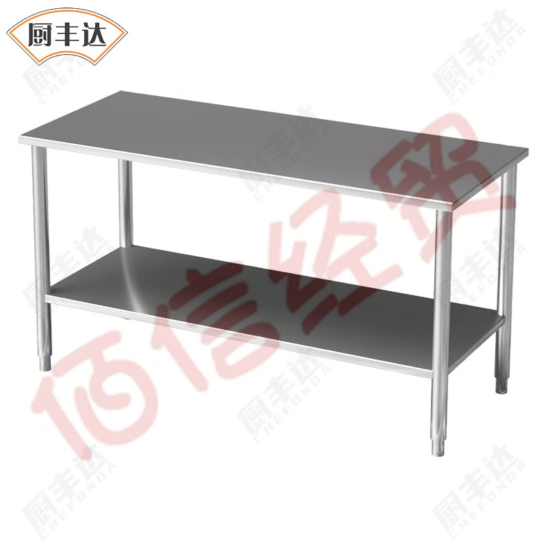 厨丰达厨房不锈钢工作台双层操作台商用桌子切菜案板打荷打包台201加厚免组装150*80*80/1.0(其它型号咨询客服) 自营