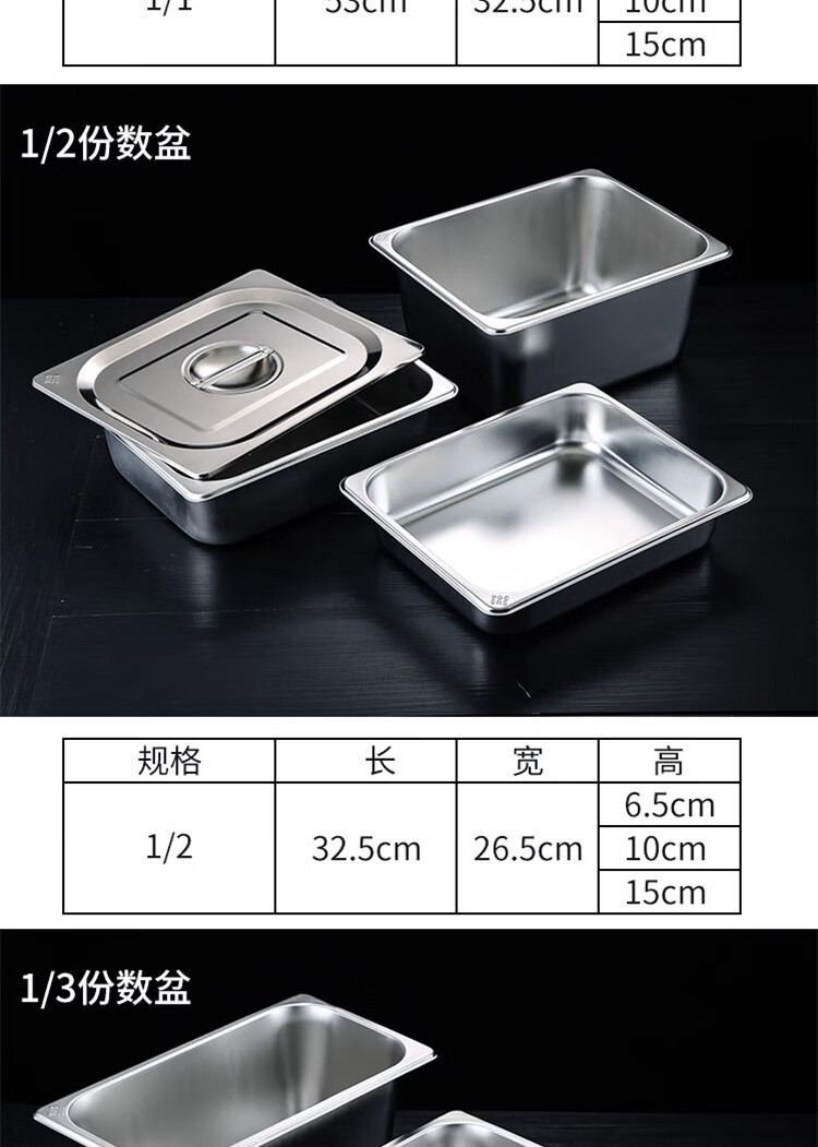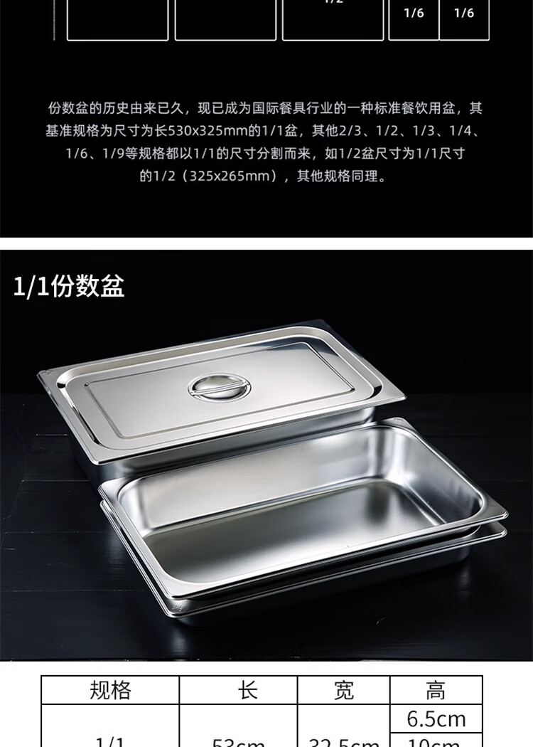 厨丰达份数盒不锈钢方盆带盖份数盆商用分餐盒餐盆分数盘分数盒530*325*65【304材质含盖】(其它型号咨询客服) 自营
