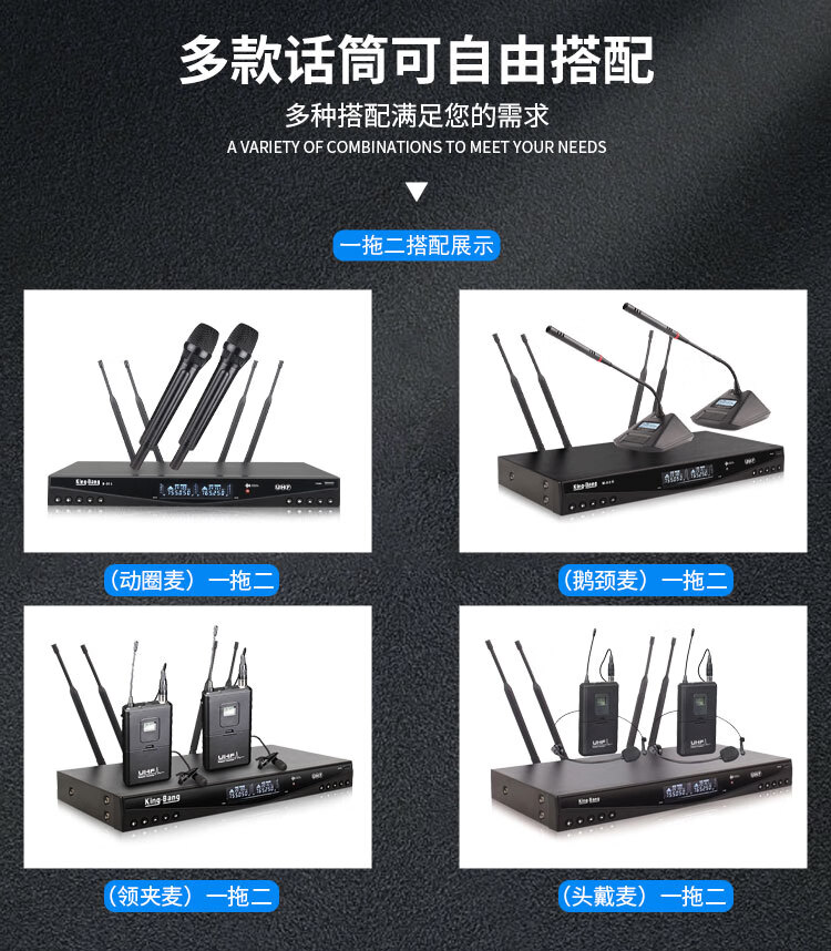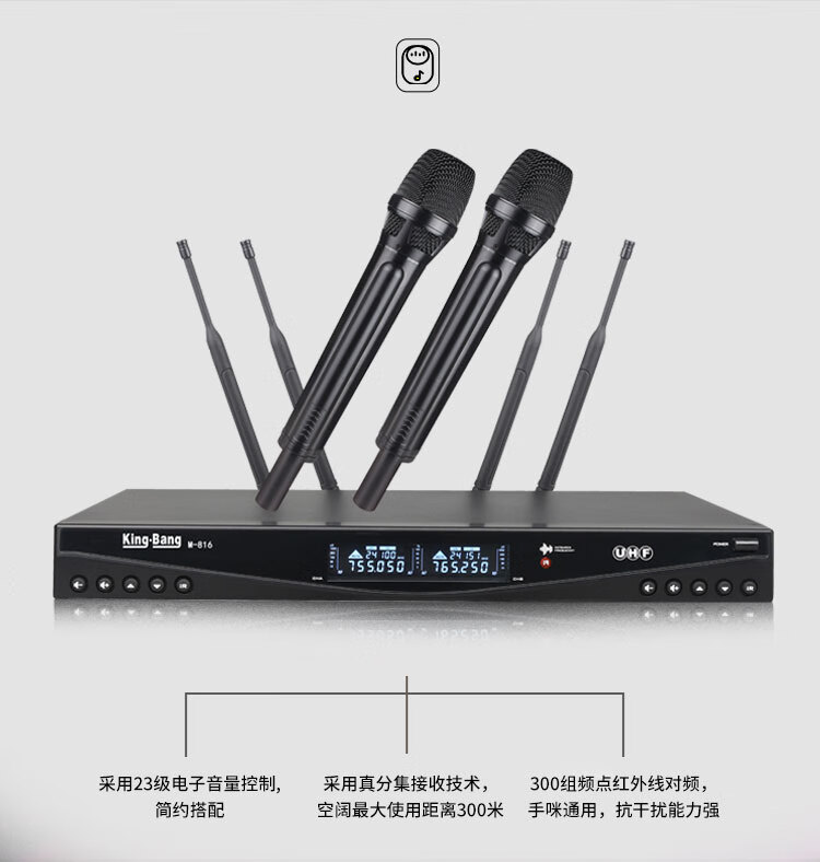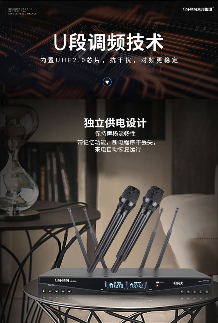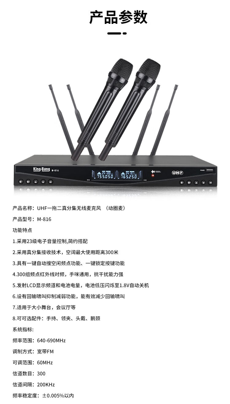 King-Bang京邦M-816UHF一拖二真分集无线麦克风动圈麦 自营