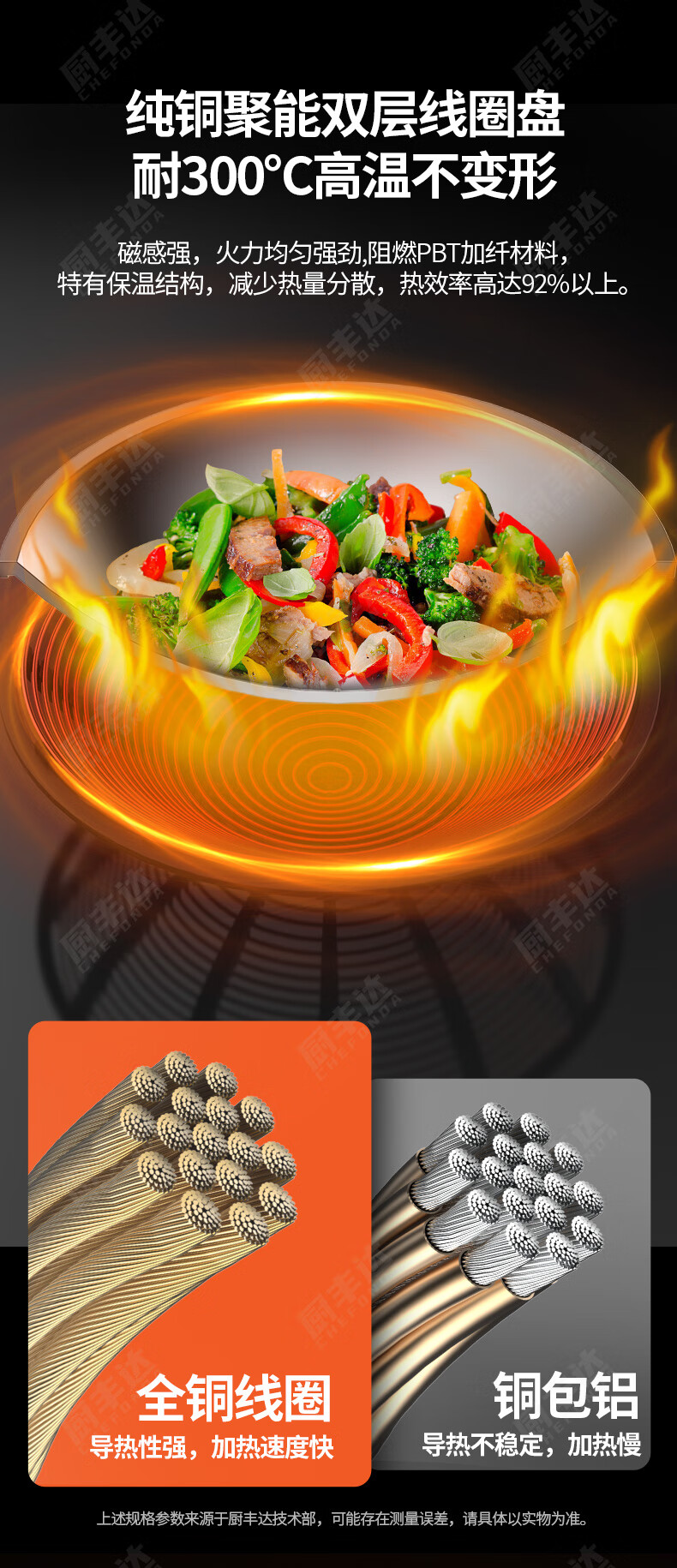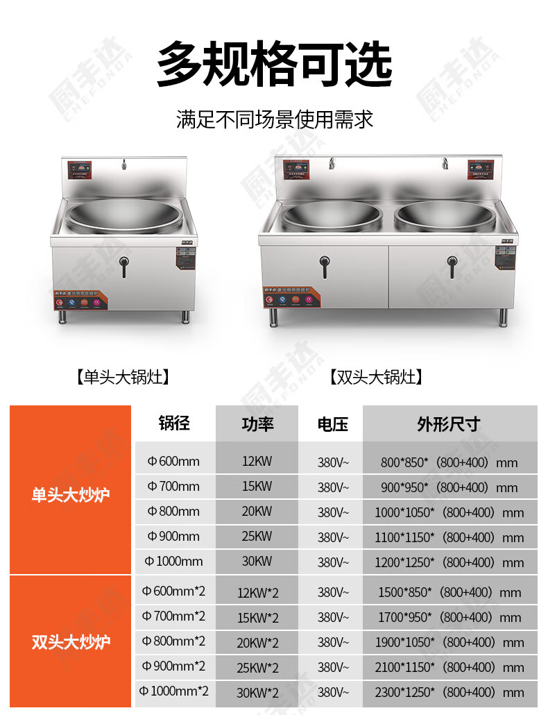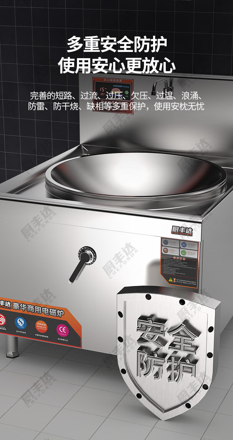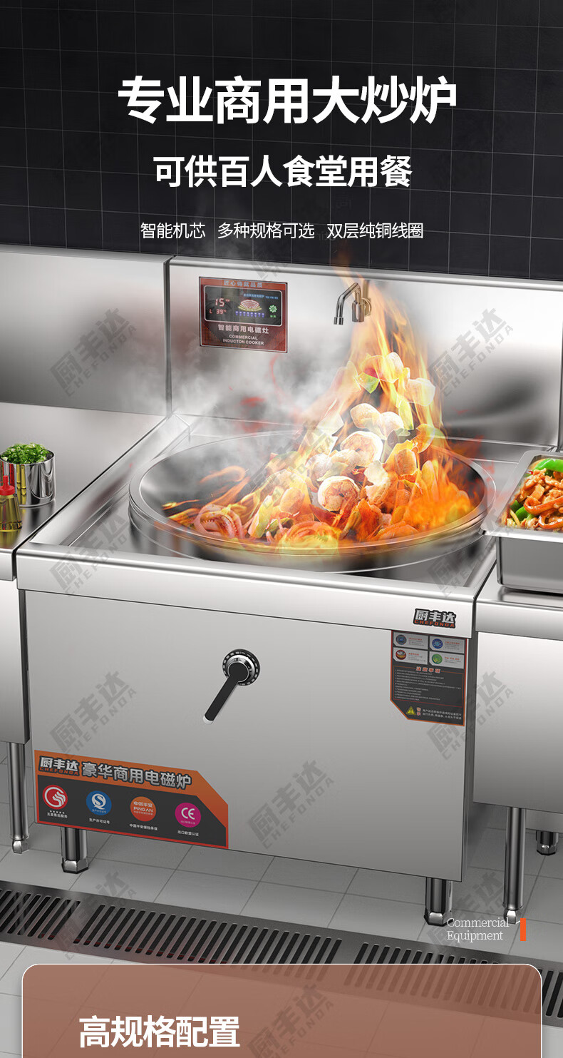 厨丰达大功率商用电磁炉304商用电磁灶大锅灶学校单位食堂专用猛火电炒锅电磁电灶台12kw一价全包