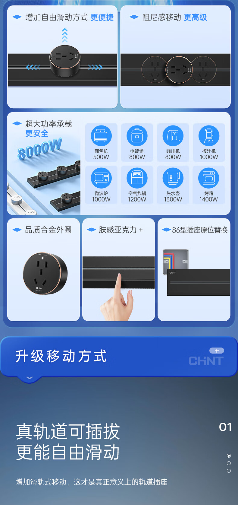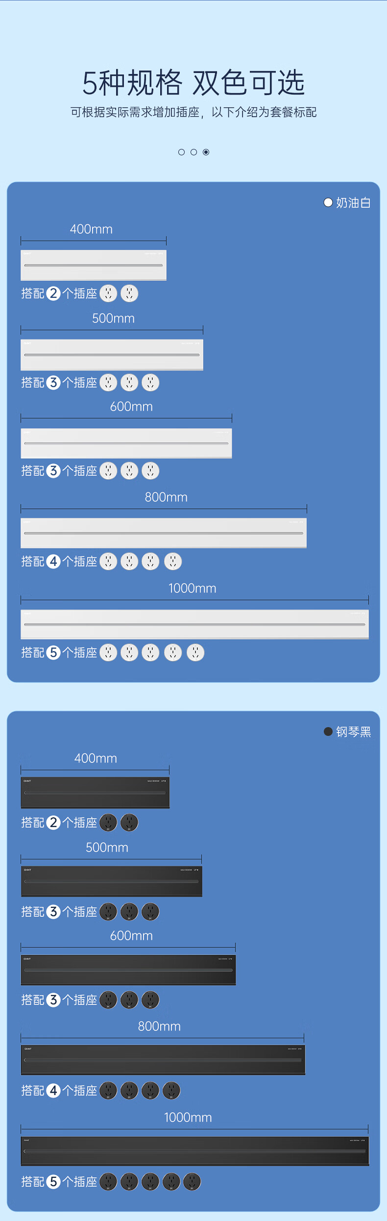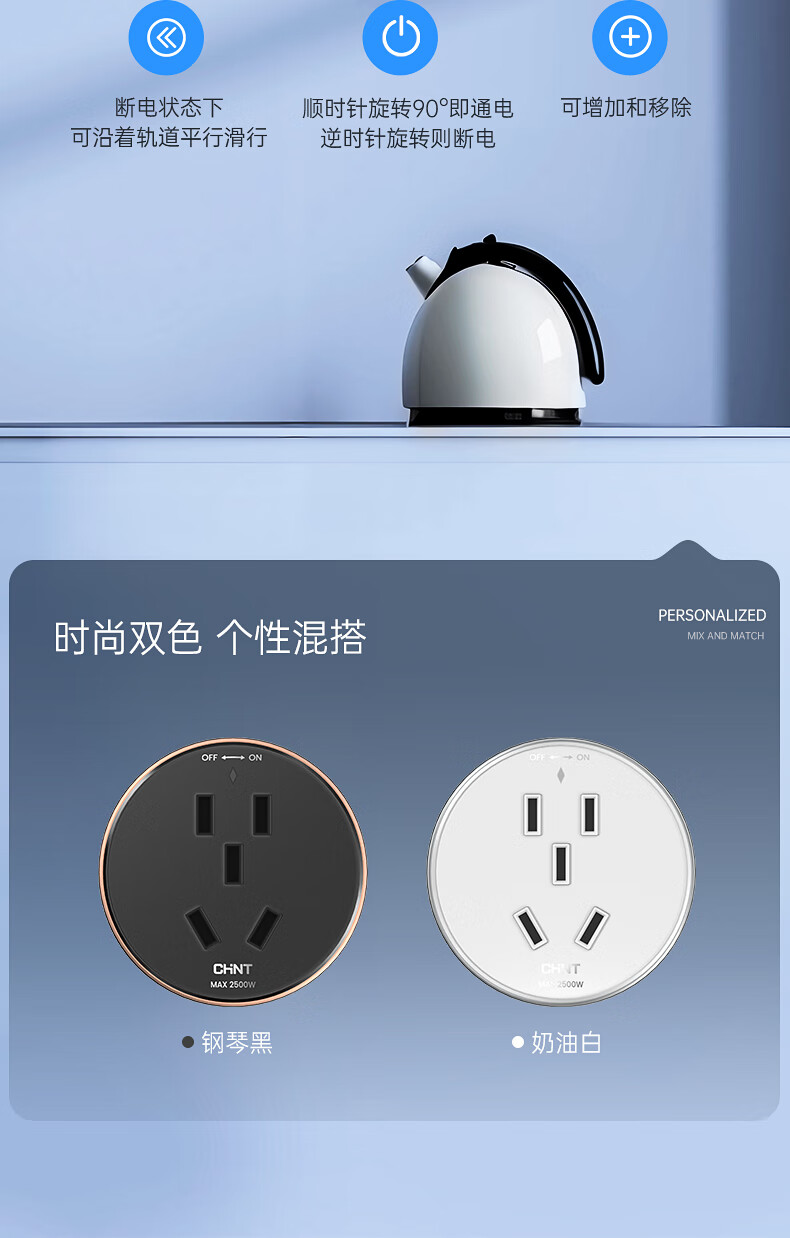 正泰明装轨道插座免打孔可移动墙壁插座壁挂式100cm+5个五孔奶油白(其它型号咨询客服) 自营