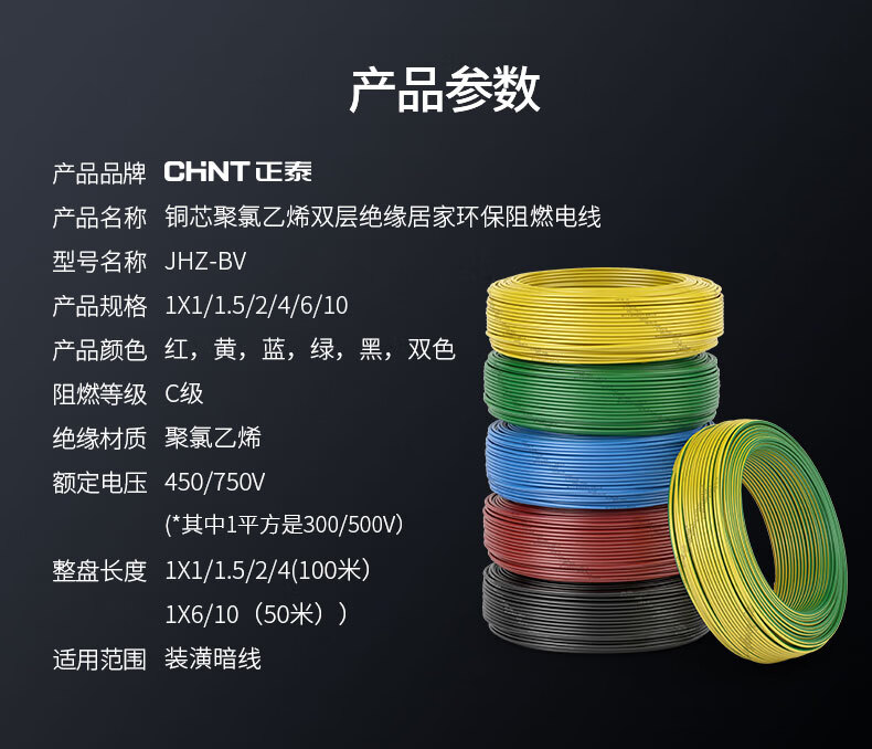 正泰(CHNT)电线电缆JHZ-BV10平方50米双层绝缘环保阻燃国标家装铜芯硬线(其它型号咨询客服) 自营