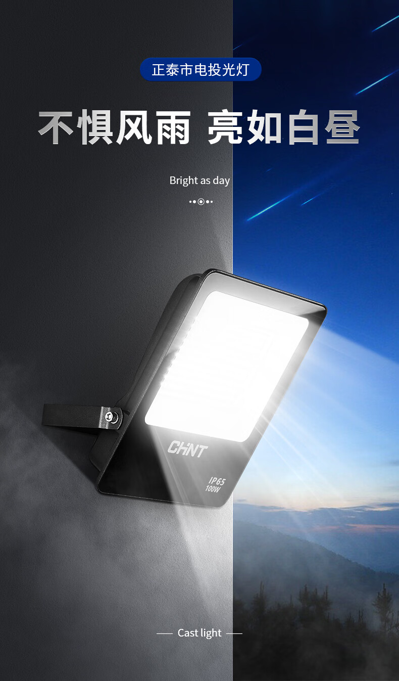 正泰(CHNT)LED室外庭院防水厂房照明射灯路灯露营营地灯200W市电投光灯(其它型号咨询客服) 自营