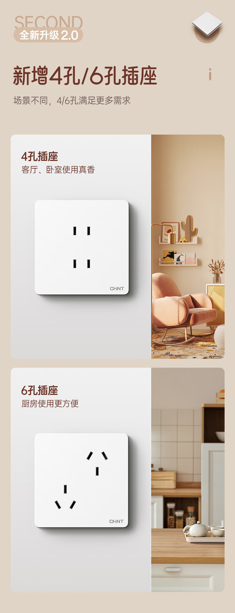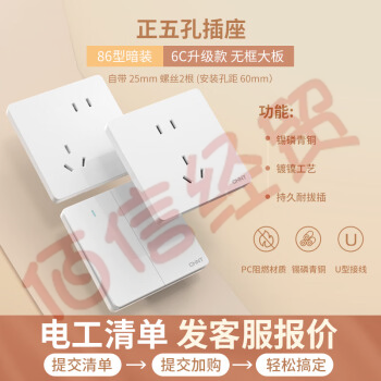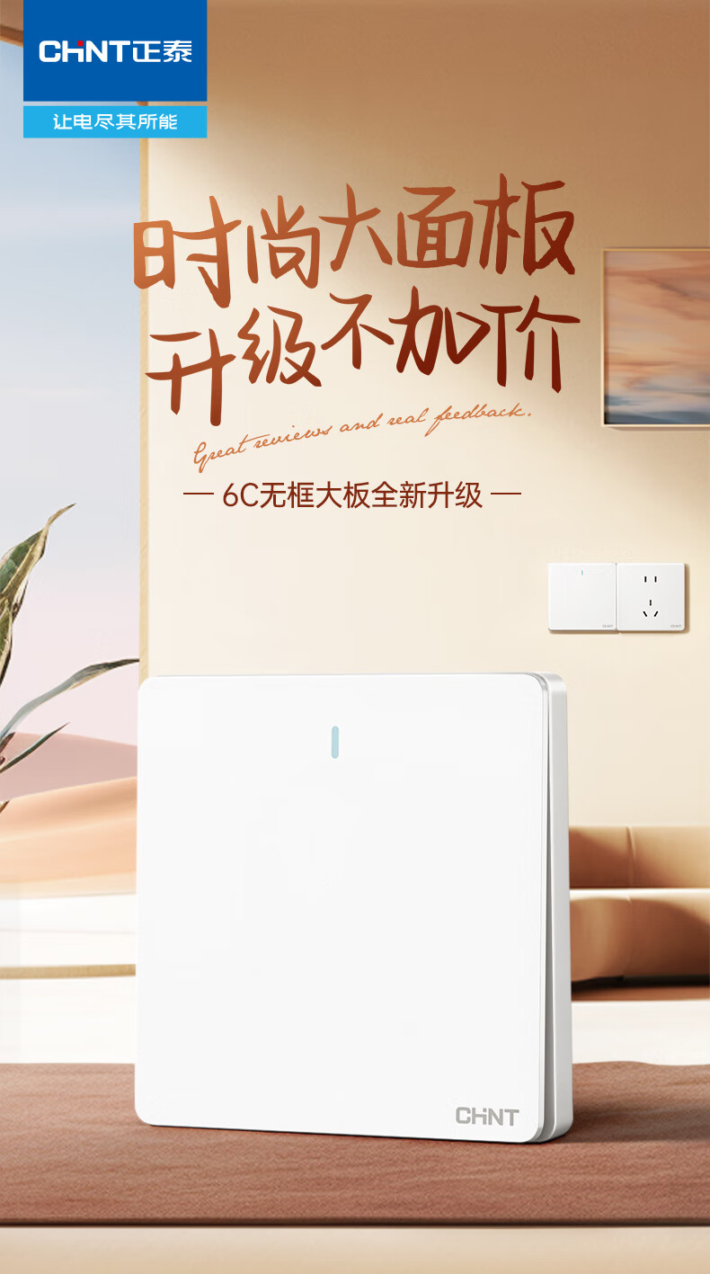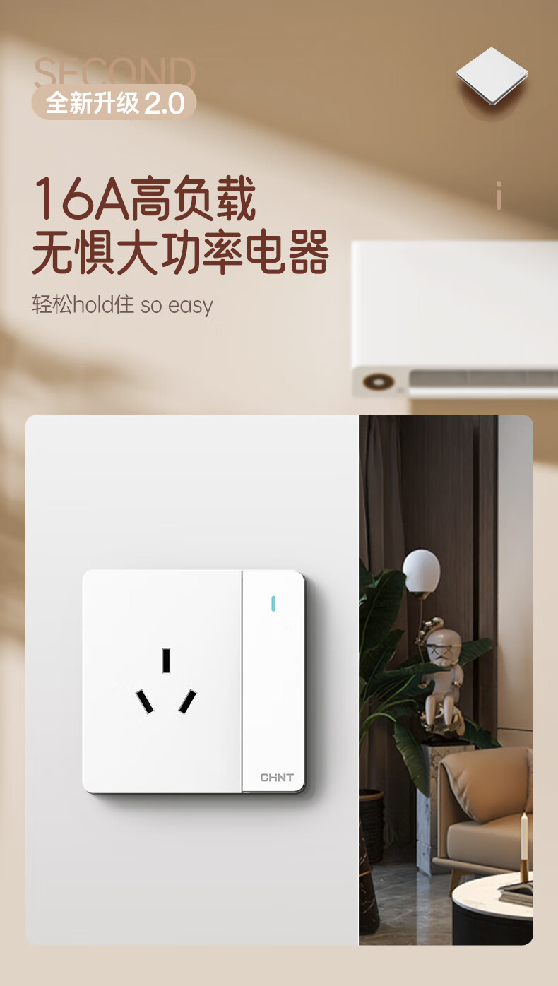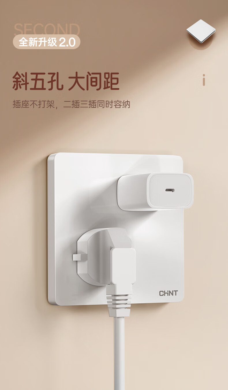 正泰(CHNT)开关插座墙壁面板家用86型开关面板五孔插座10只装白色(其它型号咨询客服) 自营