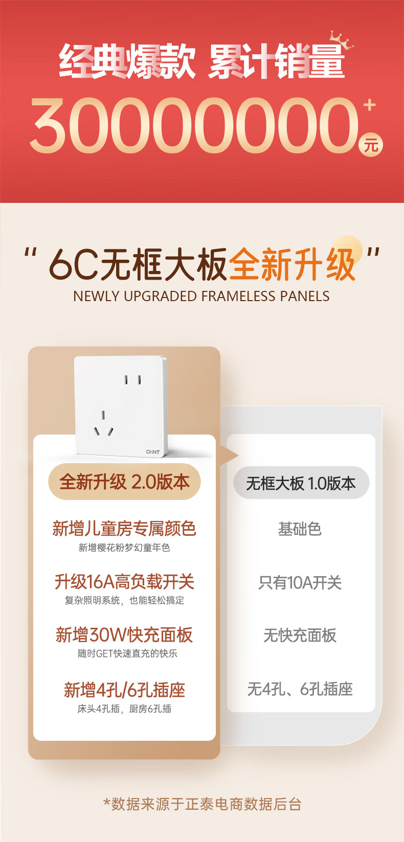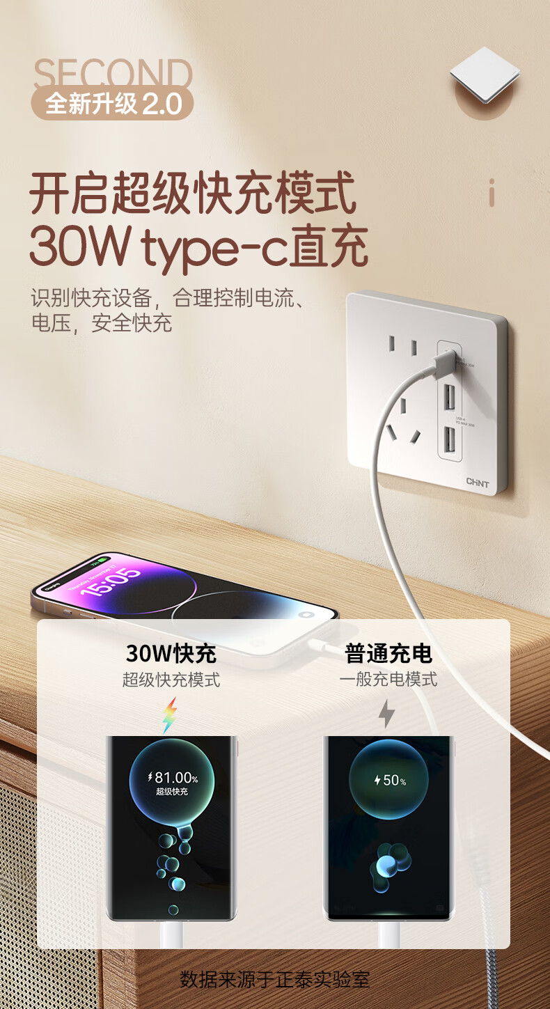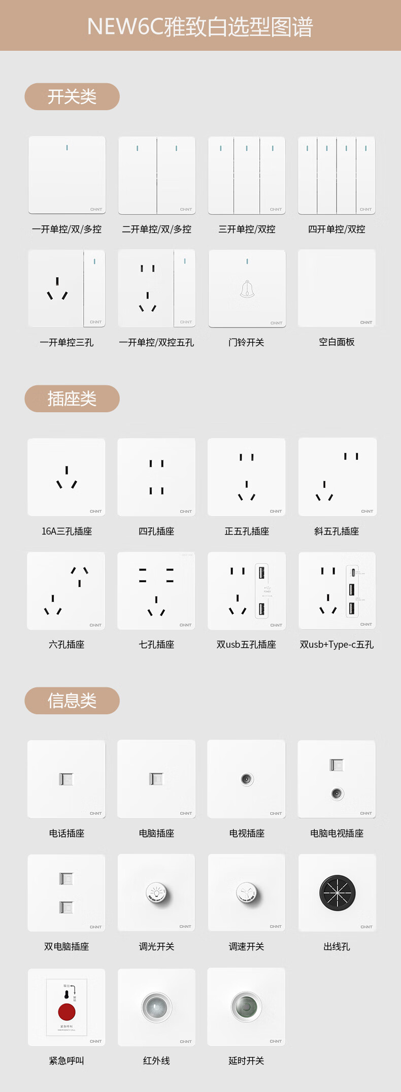 正泰(CHNT)开关插座墙壁面板家用86型开关面板五孔插座10只装白色(其它型号咨询客服) 自营